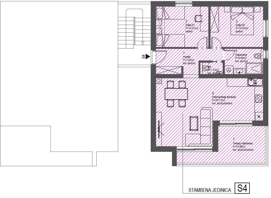 Stan oznake S4 na 2.katu stambene zgrade u izgradnji ukupne korisne površine 98m2.