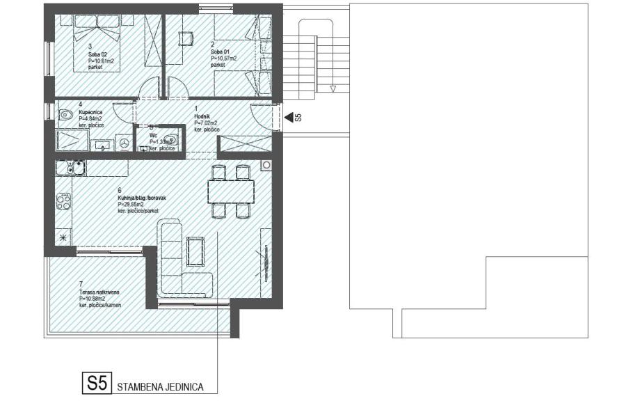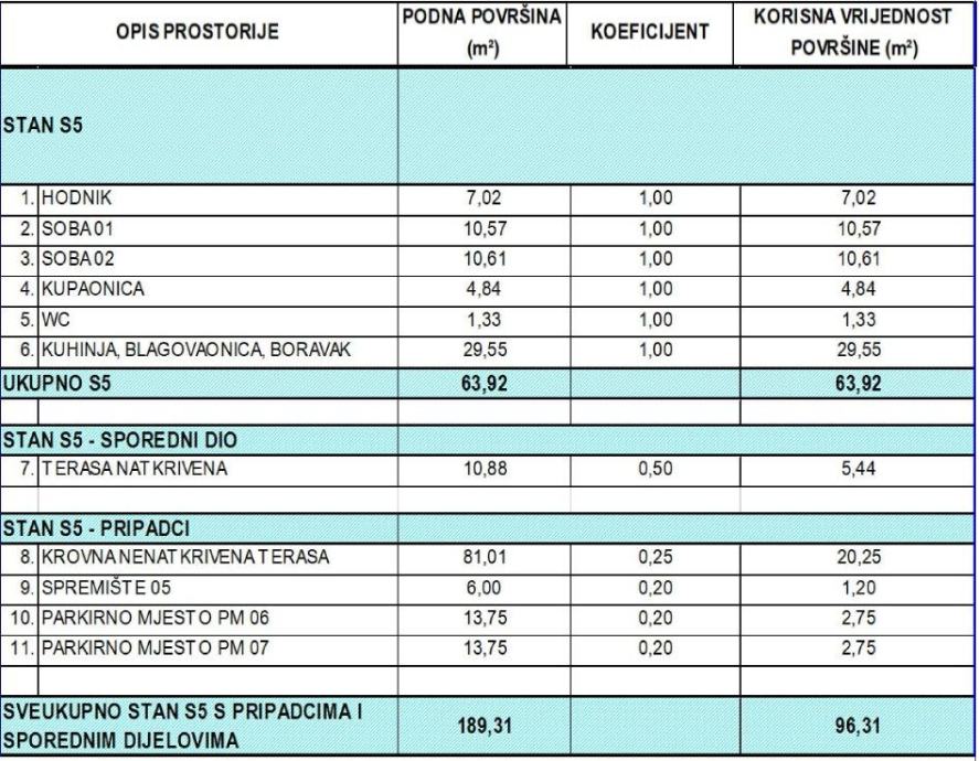 Stan oznake S5 na 2.katu stambene zgrade u izgradnji ukupne korisne površine 96.31m2.