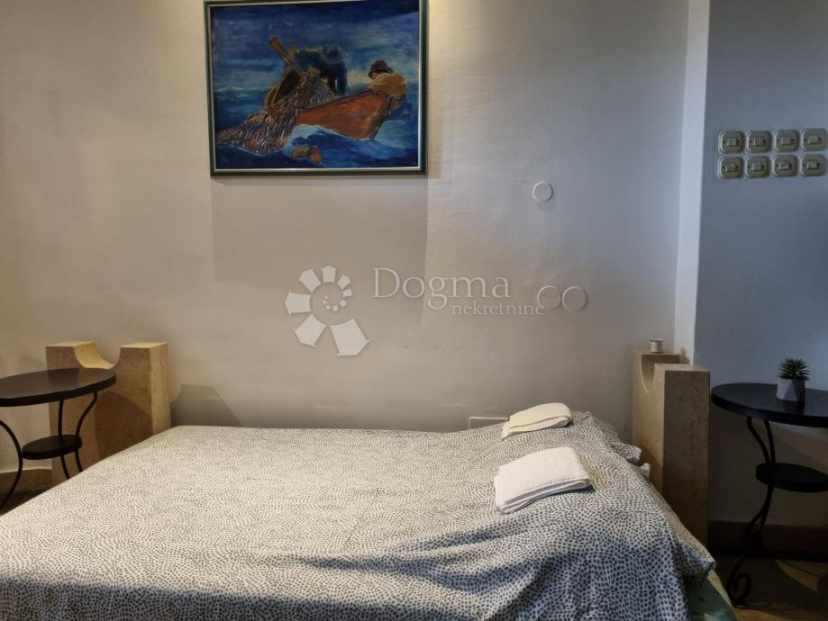 U samom centru Pule prodaje se zgrada sa 4. kata i poslovnim prostorom u prizemlju. Zgrada je tlocrtne površine 40 m2 i svaki kat je odvojena stambena jedinica povezana međusobno stepeništem. Stan na 1. katu je površine 39,2 m2 a sastoji se od dnevnog boravka, kuhinje, hodnika, kupaone, sobe i terase.