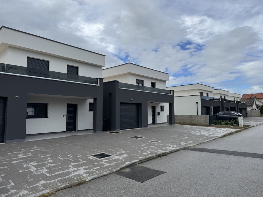 Kuća se nalazi vili s ukupno dvije kuće, građena po najvišim standardima kvalitete (podno grijanje, PVC stolarija, garažno mjesto, termofasada 15cm, sva zasebna brojila i etažirana).