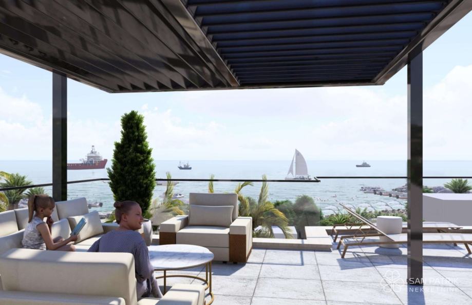 Apartmani površine od 50 do 150 kvadratnih metara, svaki s balkonom ili terasom koja nudi neometan pogled na more. Moderno dizajnirani interijeri i vrhunska oprema osiguravaju najviši standard života.