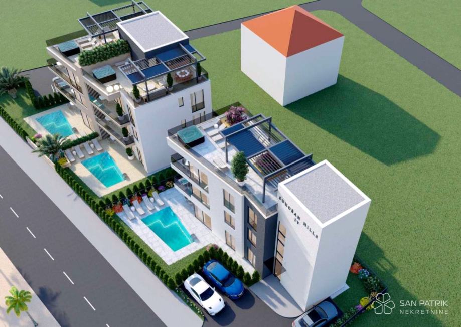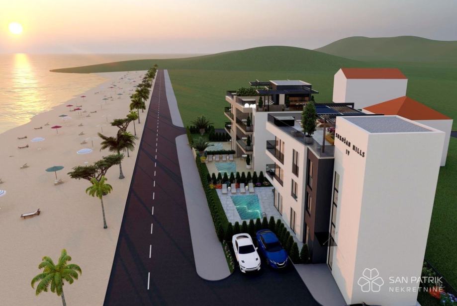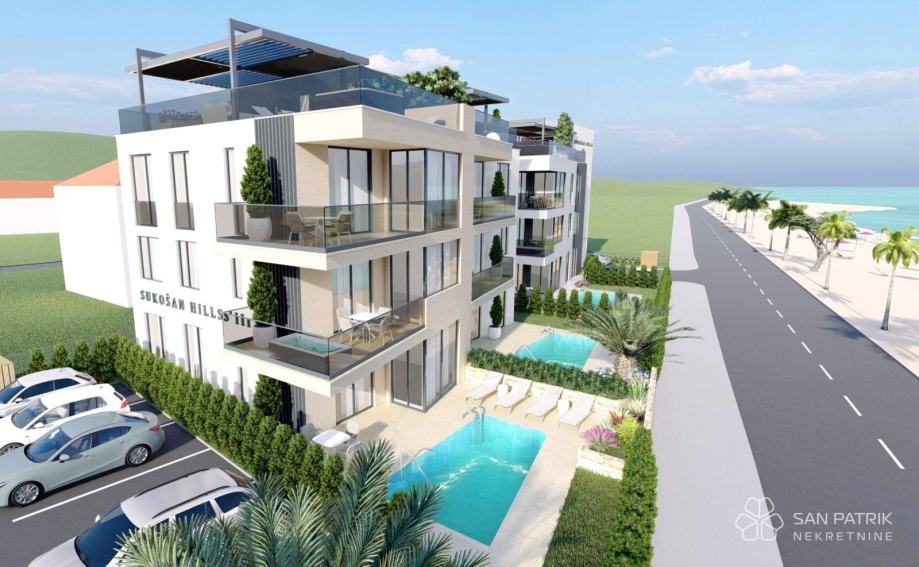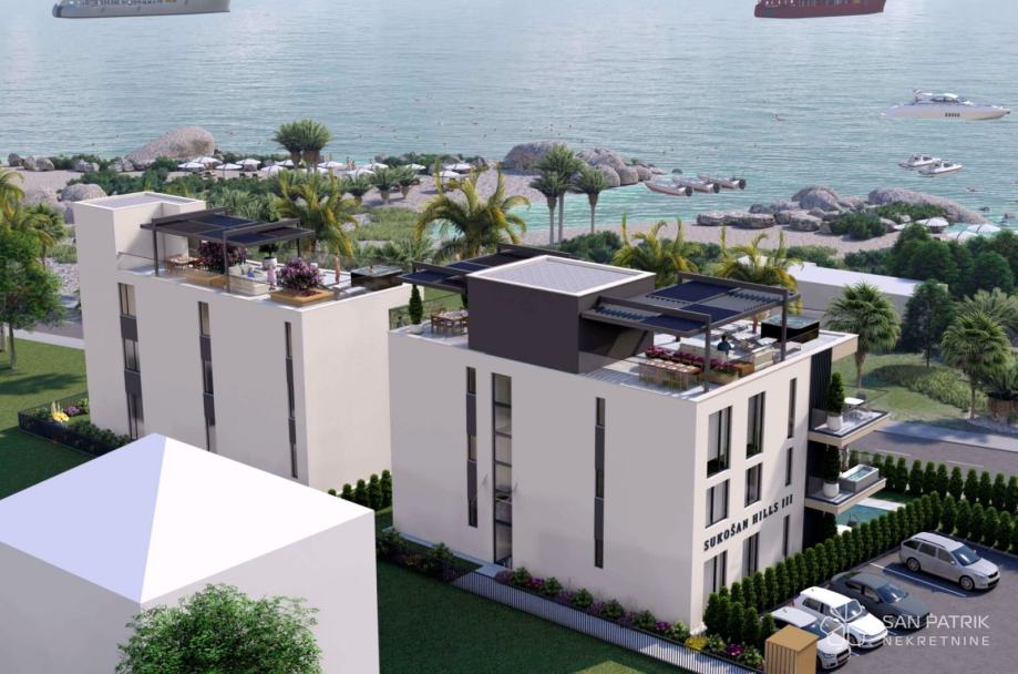 Predstavljamo novi moderan projekt u Sukošanu – vašu oazu mira i udobnosti na prekrasnoj obali Jadranskog mora. Ovaj luksuzni kompleks sastoji se od tri stambene zgrade smještene na atraktivnoj lokaciji, prvi red do mora, svega 10 metara od prekrasne plaže i kristalno čistog mora. Stanovi u ovom kompleksu su spoj elegantnog dizajna, spektakularnih pogleda i vrhunskih sadržaja.