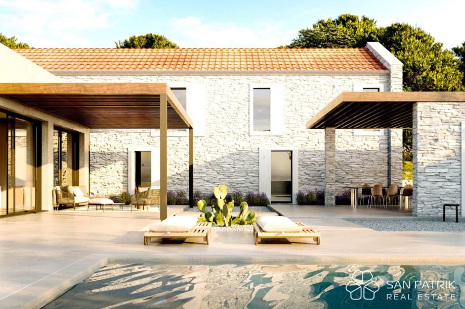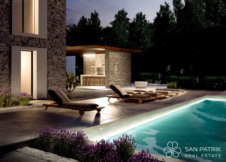 Vila Istra - prizemlje + kat - ukupna neto površina 300 m2 (4 spavaće sobe + 4 kupaonice + 2 WC + wellness zona) + bazen sa sunčalištem + zona vanjskog ložišta + dvorište + 2 parkirna mjesta = 2.250.000 EUR (PDV uključen u cijenu)