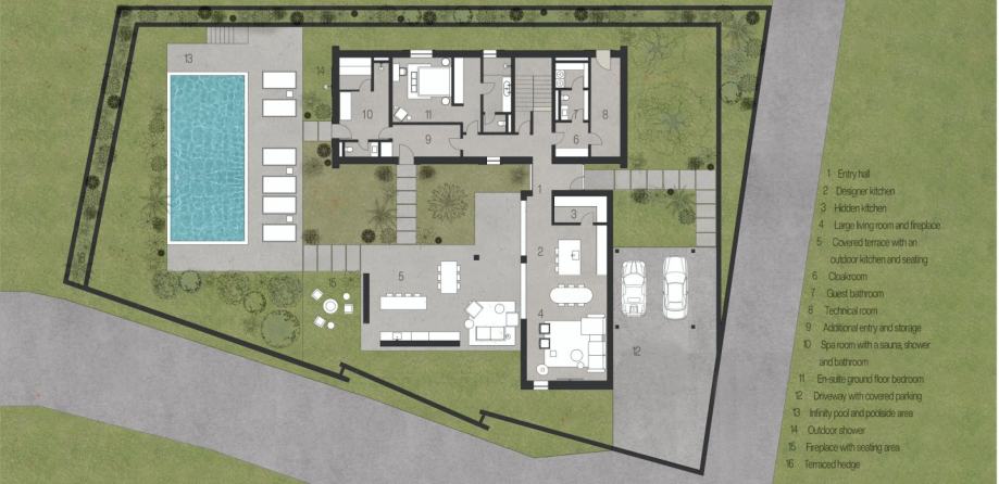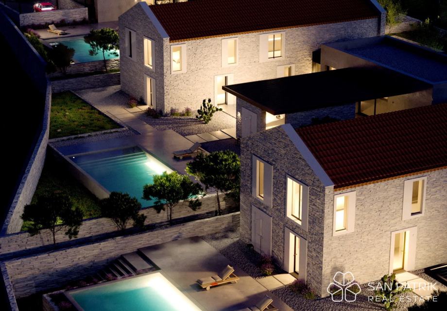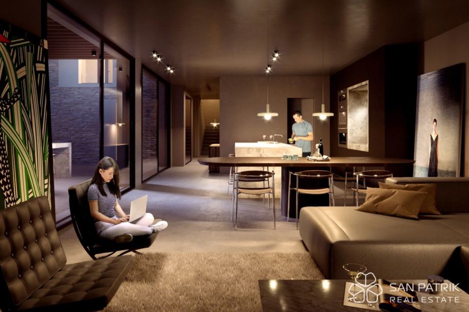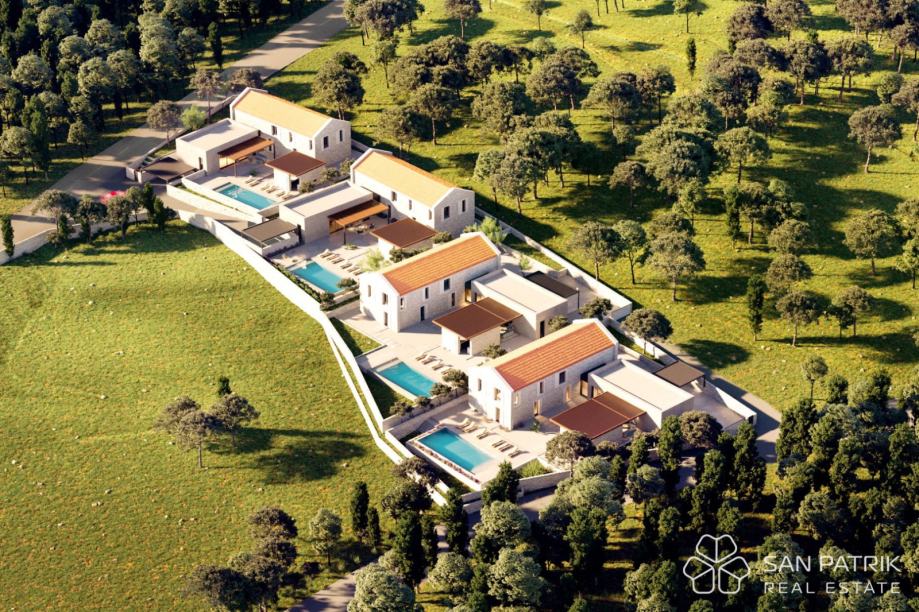 Luksuzni sadržaji: Svaka vila površine 400 kvadratnih metara nudi raskošan životni prostor koji se otvara na 100 kvadratnih metara natkrivenog vanjskog prostora, nadopunjen prostranim terasama, velikim bazenom i uređenim vrtovima s lavandom, maslinama i aromatičnim grmljem, stvarajući osjetilni raj mira i luksuza.