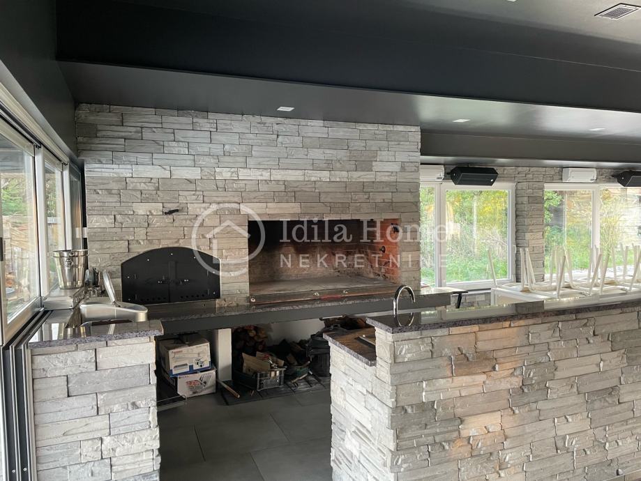 Na unutarnji prostor nadovezuje se velika terasa koja se po potrebi može potpuno otvoriti staklenim stijenama za ljetnu varijantu ili zatvoriti za korištenje tijekom zimskih mjeseci. Terasa je u potpunosti opremljena – pečenjara, peka, perilica suđa, sudoper, ledomat, aparat za kavu, veliki hladnjak, projektor s platnom, vrhunsko ozvučenje, laptop, a poseban ugođaj stvaraju disko kugla i rasvjeta za stvaranje prave zabavne atmosfere.
