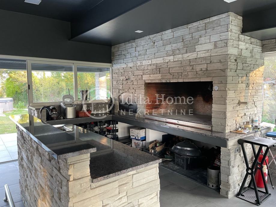 Prostrana okućnica nudi brojne sadržaje: vanjski bazen, jacuzzi, fire pit, teren za mali nogomet i odbojku.