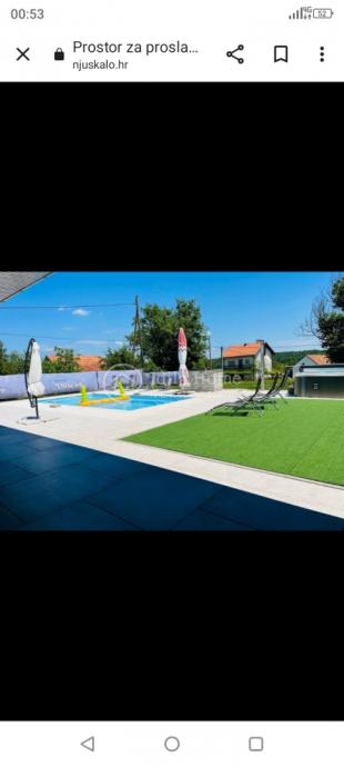 Kuća ima igralište dječje, nogometno ,odbojkaško, kuća posjeduje 2 kamina na drva ,ogromnu peku čak 6 soba i 4 kupaone.