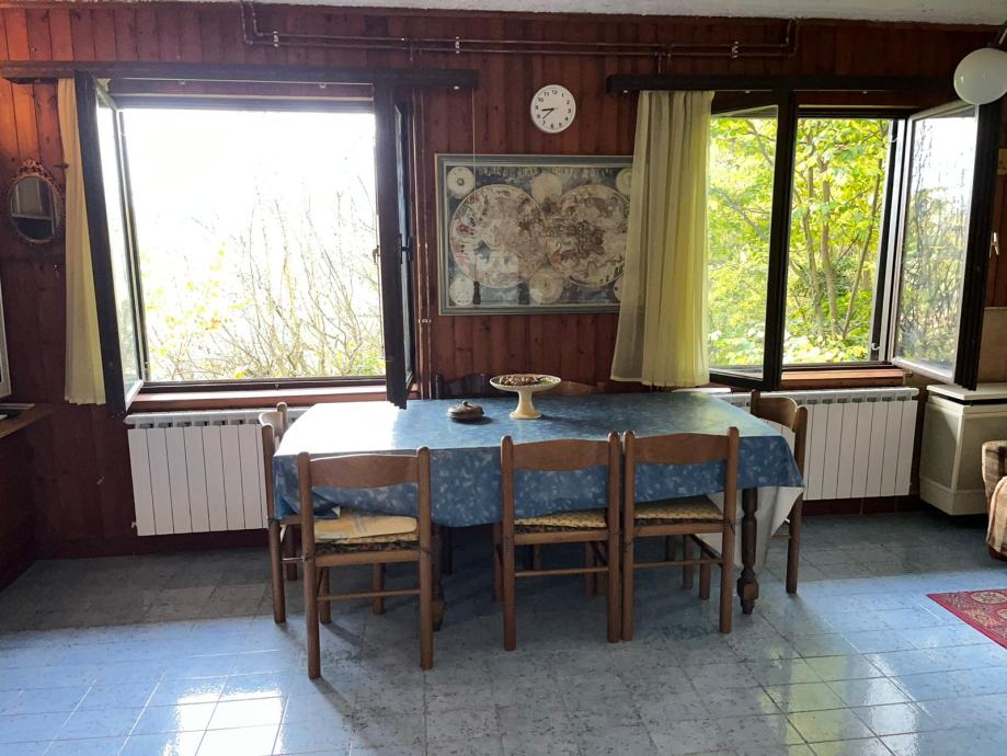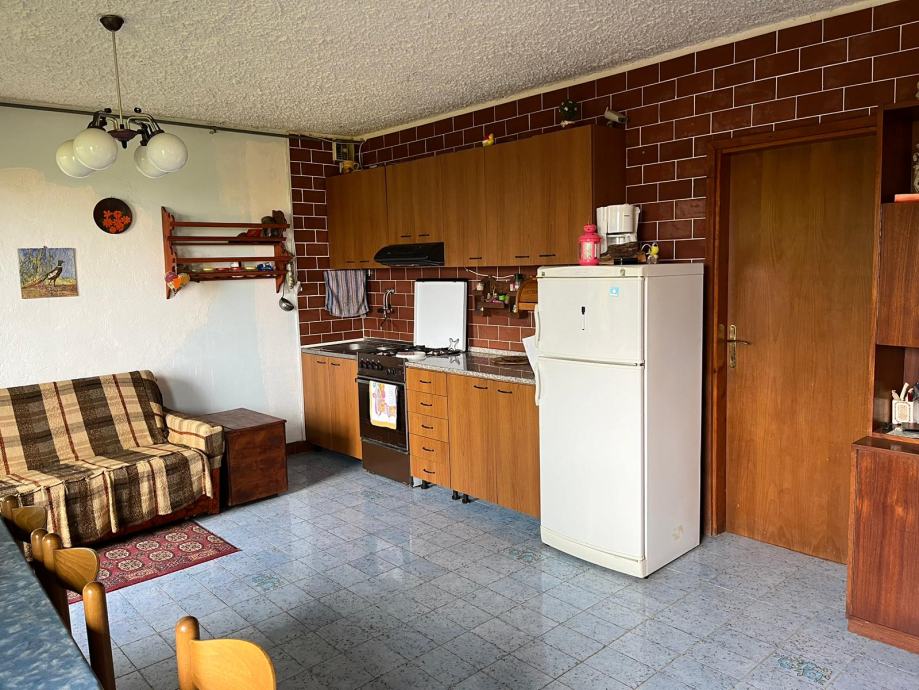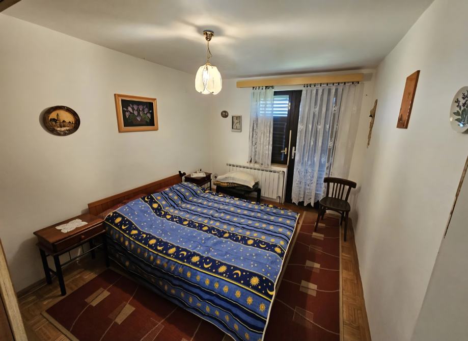 Prodaje se vikendica na tri etaže:Prizemlje do kojeg se dolazi preko natkrivene terase a sastoji se od dnevnog boravka sa kuhinjom i spremištem.Vanjskim stepenicama dolazi se na 1.kat gdje su dvije spavaće sobe i kupaonica.Stepenicama se dolazi u neuređeno potkrovlje.Uz vikendicu nalazi se šupa natkrivena terasom.