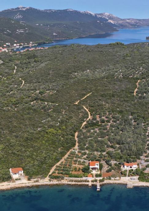 Sa zemljišta se pruža otvoren & lijepi pogled na more; parcela je prekrivena tipičnim mediteranskim raslinjem i maslinama a na njoj se nalazi upisan gospodarski objekt 26 m2 (u naravi kuća za koze).