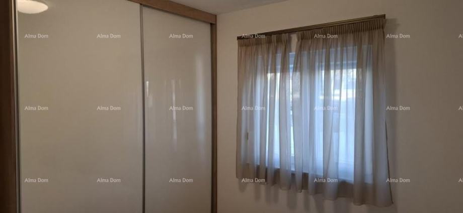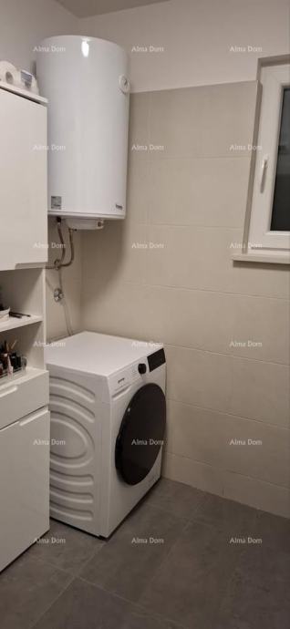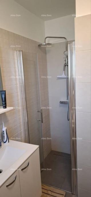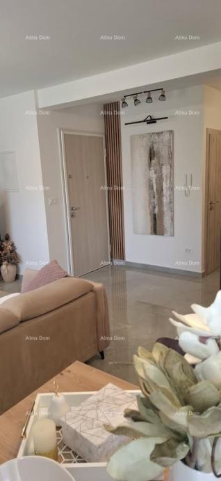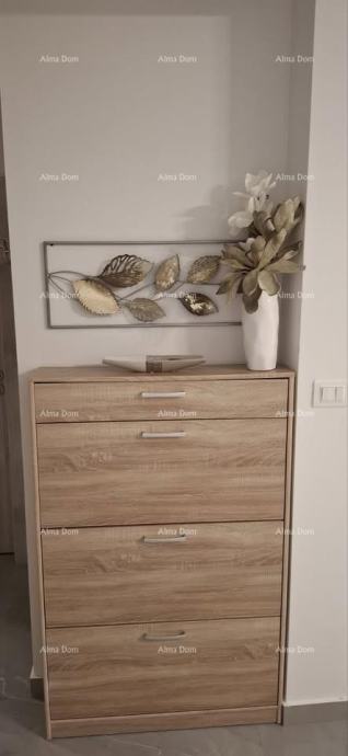 Sastoji se od dvije spavaće sobe, open space kuhinje s dnevnim boravkom, kupaonice, ostave te lođe. Stan je kompletno namješten po mjeri s kvalitetnim namještajem, a kuhinjski aparati su još pod garancijom.