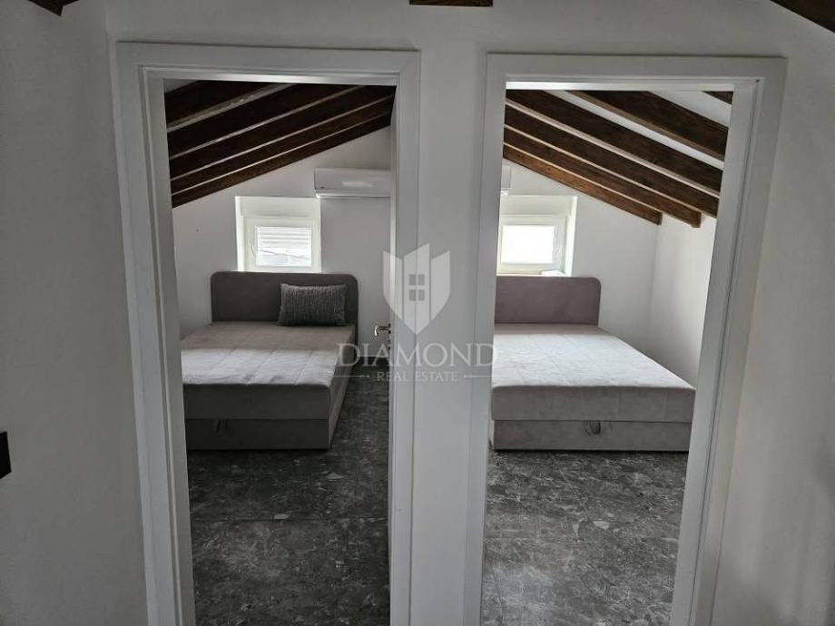 U mirnom istarskom selu prodaje se novoadaptirana kuća površine 85 m², idealna za obiteljski život ili turistički najam. Kuća se prostire na tri etaže, pri čemu se u prizemlju nalazi prostrani dnevni boravak povezan s kuhinjom i blagovaonicom. Na drugoj etaži smještena je jedna spavaća soba, kupaonica i terasa, dok se na trećoj nalaze dvije spavaće sobe i dodatna kupaonica.