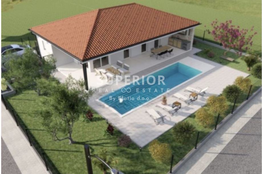 Žminj – novogradnja 135 m², bazen, 600 m² okućnice, potpuno namještena (prodaja)