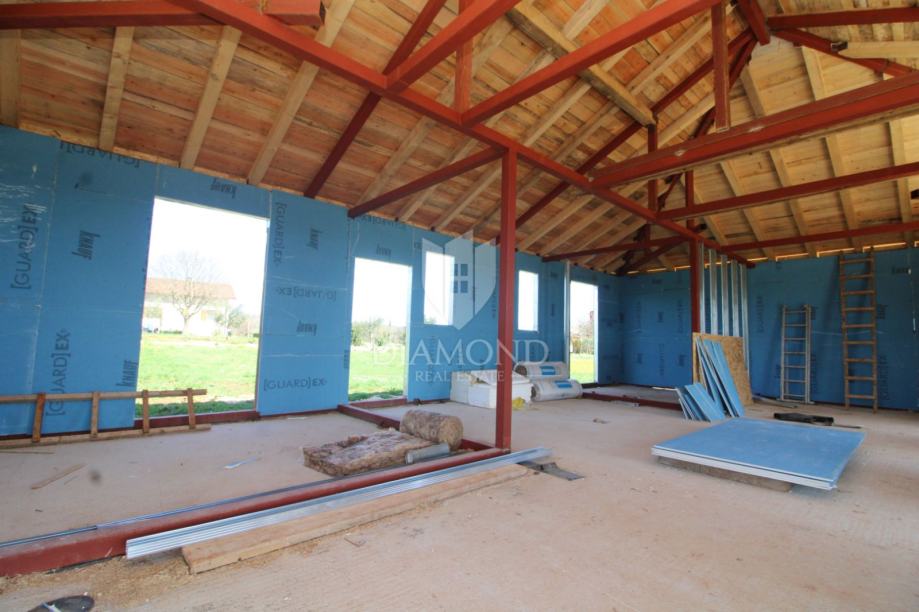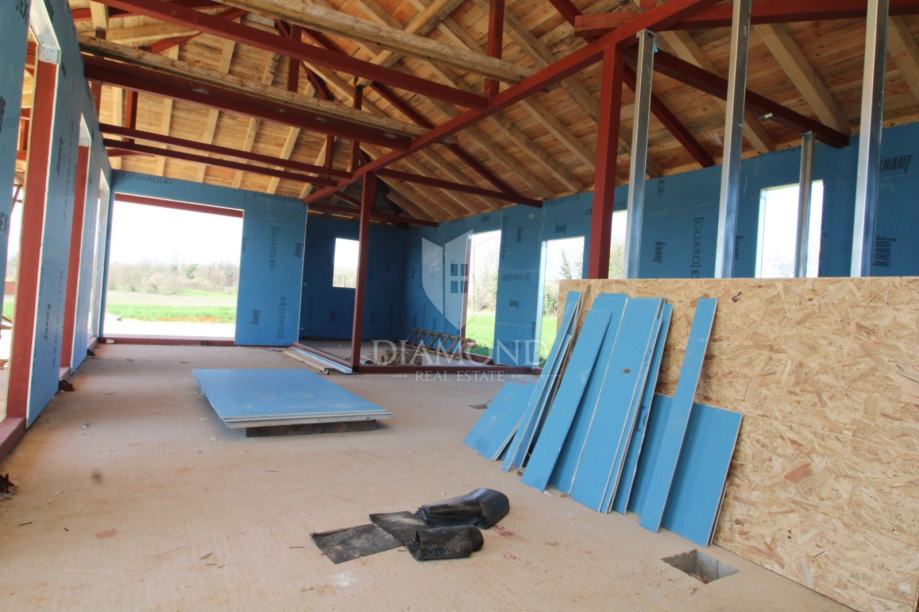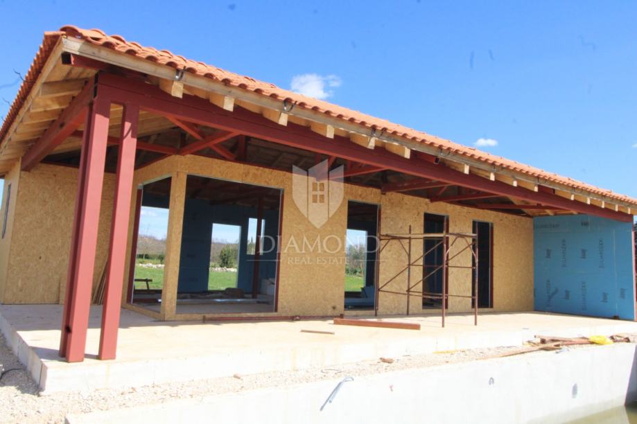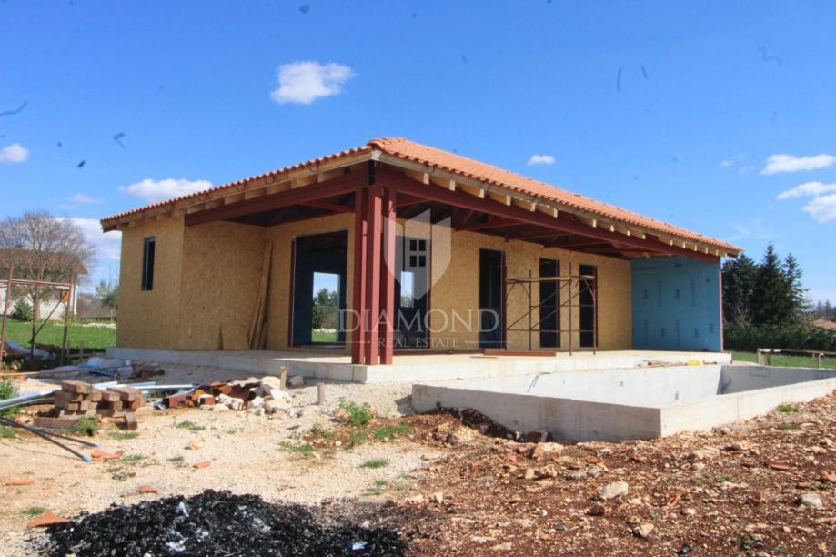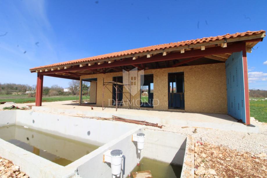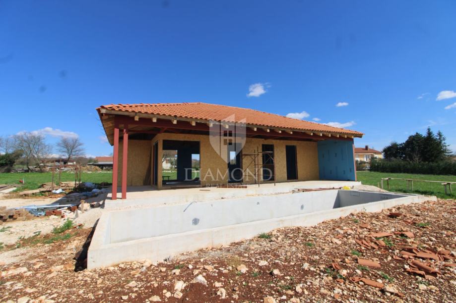 Žminj, okolica, novogradnja prizemnice s bazenom.