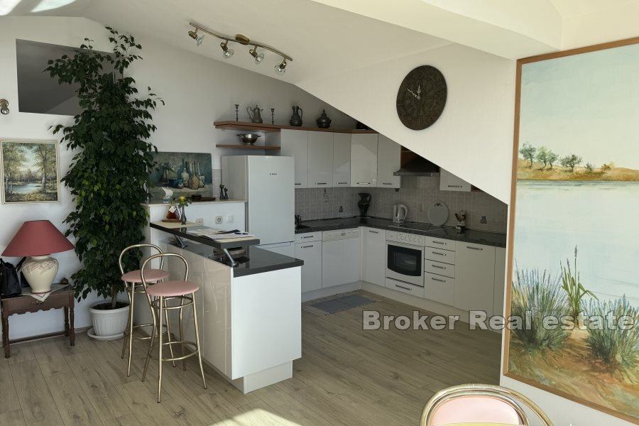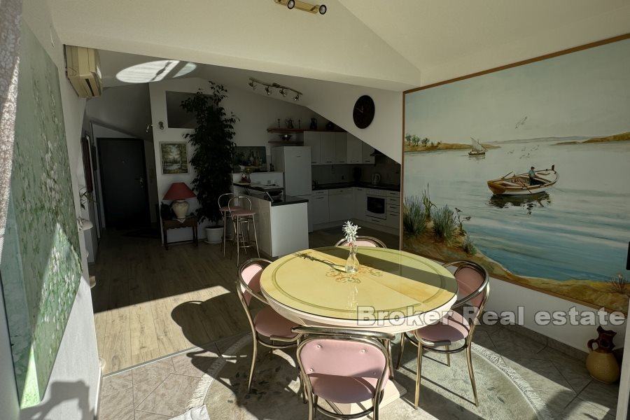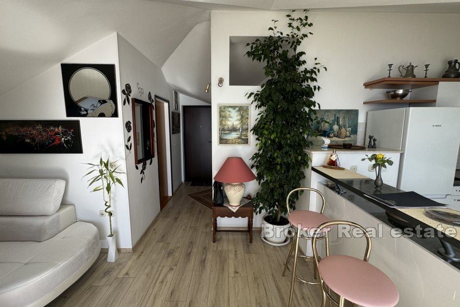 Prekrasan dvosobni stan koji se nalazi u jednom od najatraktivnijih dijelova Splita – Žnjanu. Smješten na zadnjem katu manje zgrade bez lifta , ovaj stan nudi izvanredan otvoreni pogled na more.