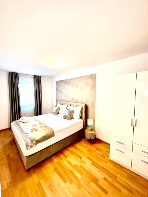 Isti je smješten na prvom katu zgrade, a sastoji se od dvije spavaće sobe, velikog kupatila, ulaznog hodnika te kuhinje s blagovaonicom i dnevnim boravkom, te lođe. Stanu pripada i jedno vanjsko parkirno mjesto te drvarnica u prizemlju zgrade.