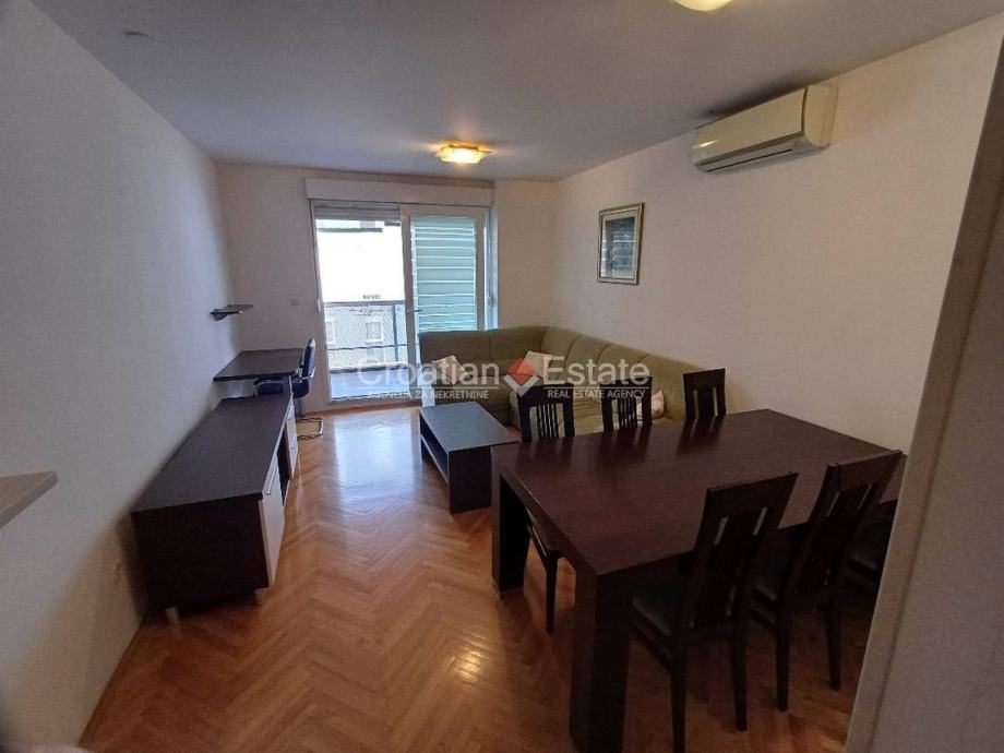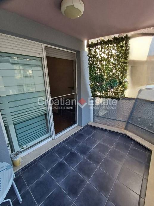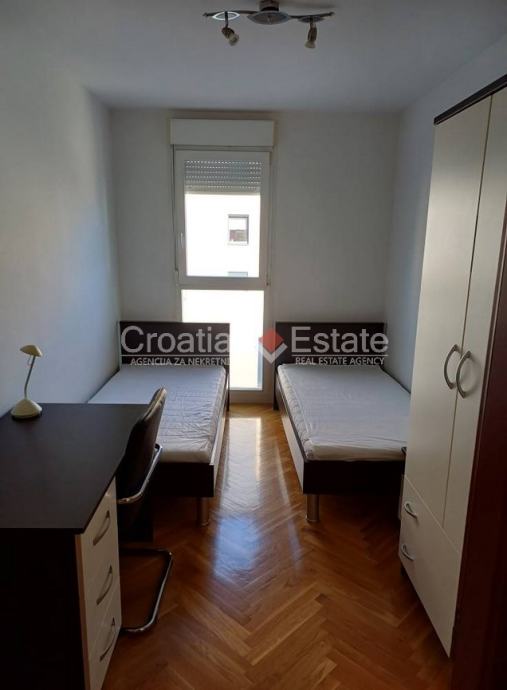 Iznajmljujemo dvosobni stan smješten na drugom katu zgrade s liftom u mirnijem dijelu Žnjana. Stambena površina stana iznosi 60 m2, a sastoji se od kuhinje s blagovaonicom i dnevnim boravkom, dvije spavaće sobe, kupatila, velike lođe na jugu i hodnika.