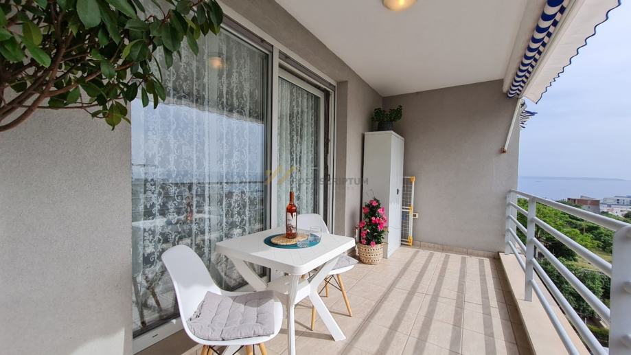 Sastoji se od ulaznog dijela, kuhinje s blagavaonicom i dnevnim boravkom, spavaće sobe, kupaonice i lođe s koje se pruža pogled na more.