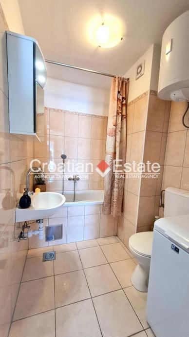 Iznajmljujemo jednosobni stan smješten na šestom katu stambene zgrade s lijepim pogledom na more. Stambene površina stana iznosi 45 m2, a sastoji se od kuhinje s blagovaonicom i dnevnim boravkom, spavaće sobe, kupatila i lođe s pogledom na more.