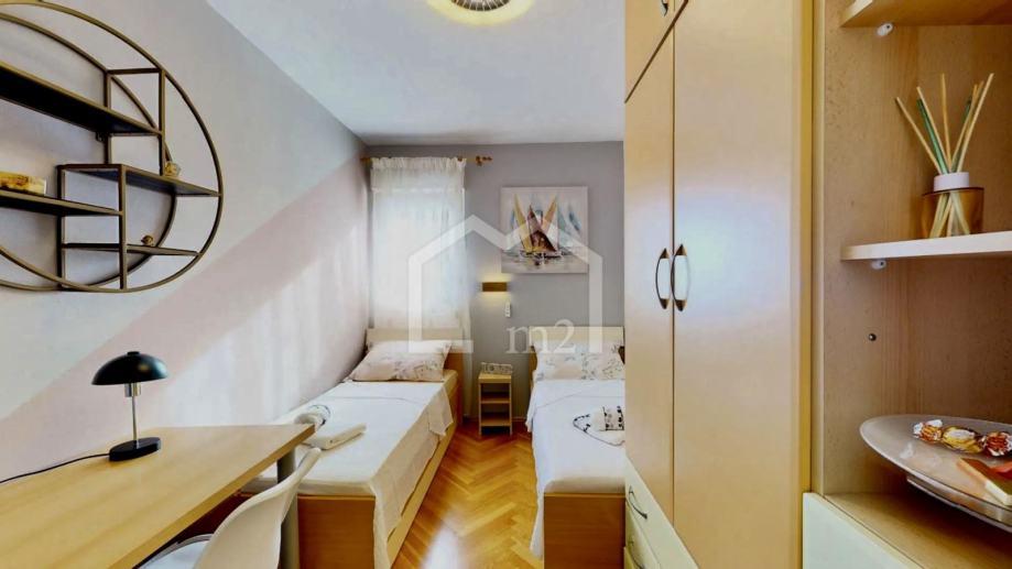 Stanu pripada sušiona za veš koja se nalazi između drugog i trećeg kata a može se koristiti i kao ostava. Nalazi se u blizini mora, dućana, škole i svih ostalih sadržaja za ugodan život. Potpuno namještajem, opremljen klima uređajem, perilicom suđa, perilicom rublja i kao takav se i iznajmljuje. Režije plaća najmoprimac po potrošnji. Nisu dozvoljeni kućni ljubimci.