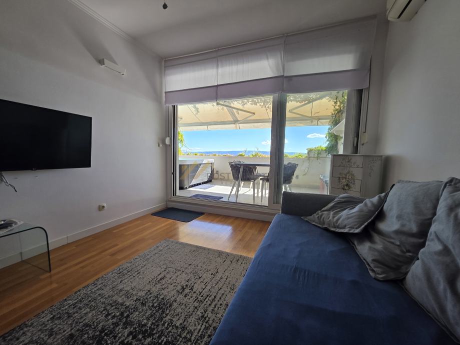 Žnjan, prvi red uz more, iznajmljuje se predivan jednosoban stan površine 55,00 m2 položen na prvom katu stambene zgrade, južne orijentacije.