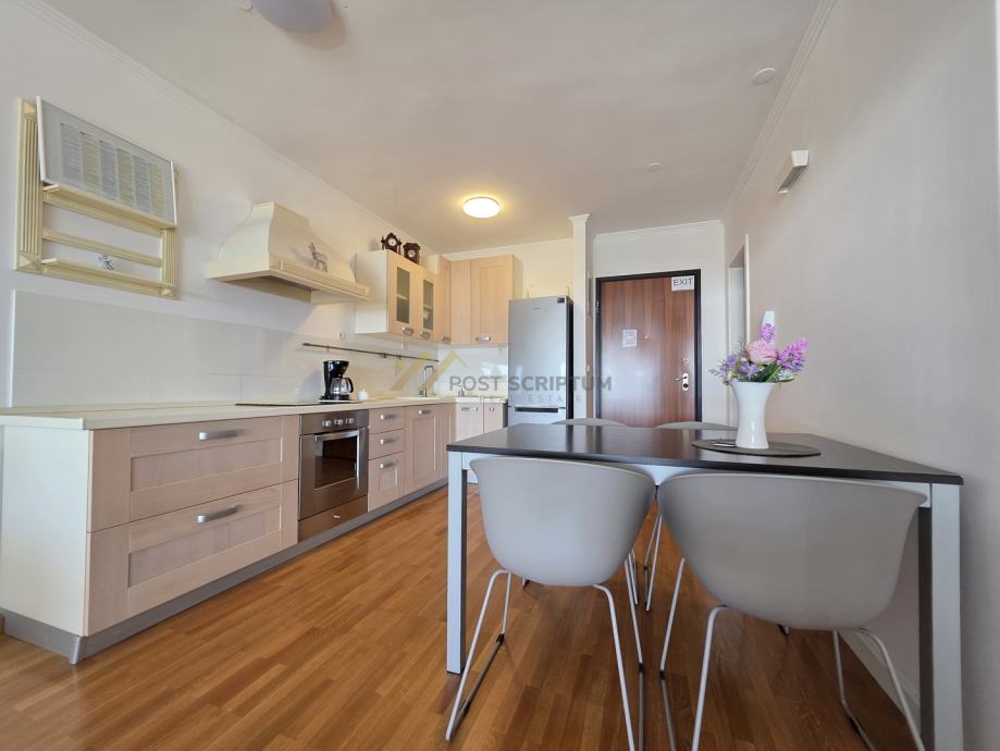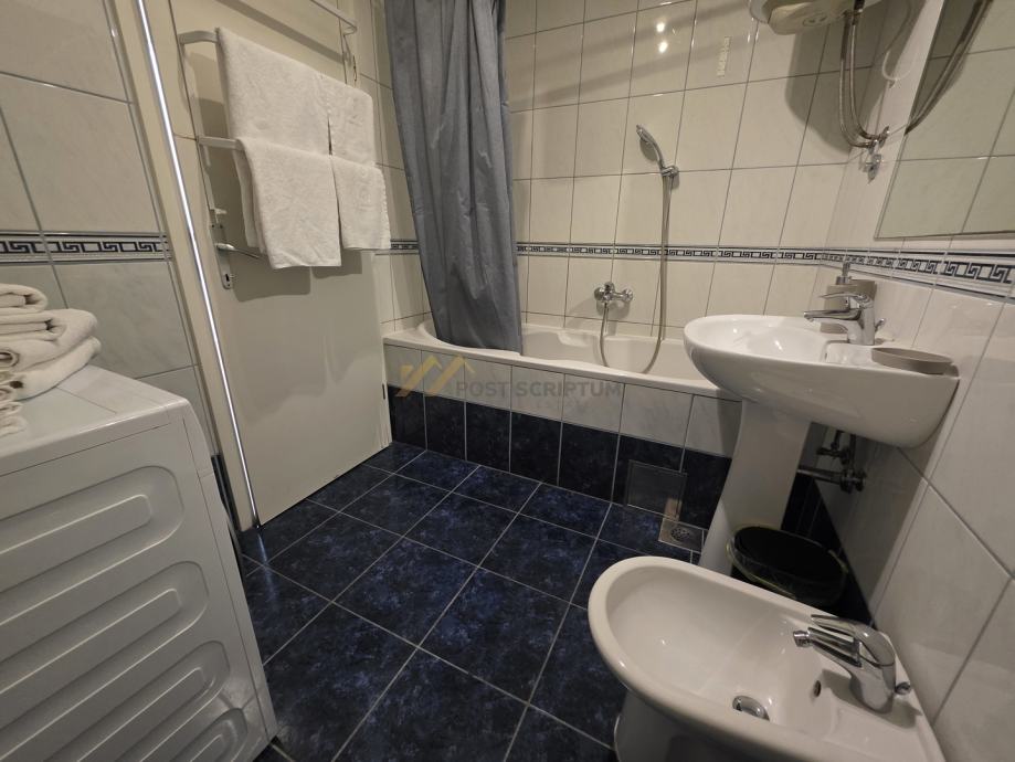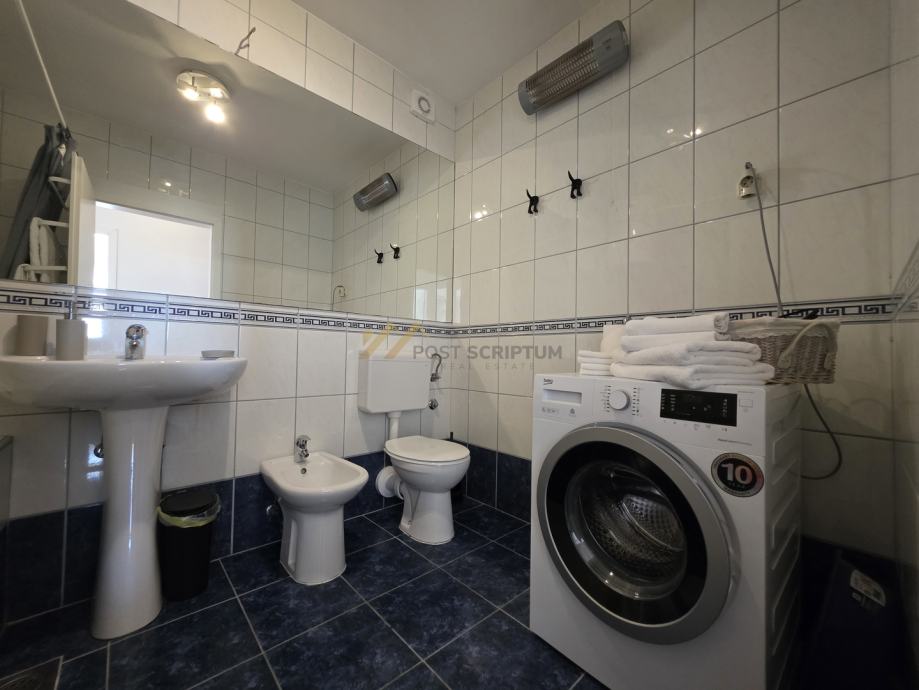 Stan je klimatiziran, modernog i lijepog uređenja, te je opremljen svim potrebnim uređajima (TV, klima, perilica rublja, perilica posuđa).
