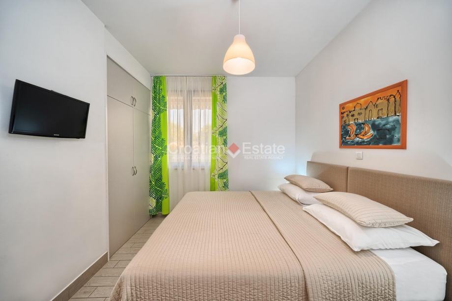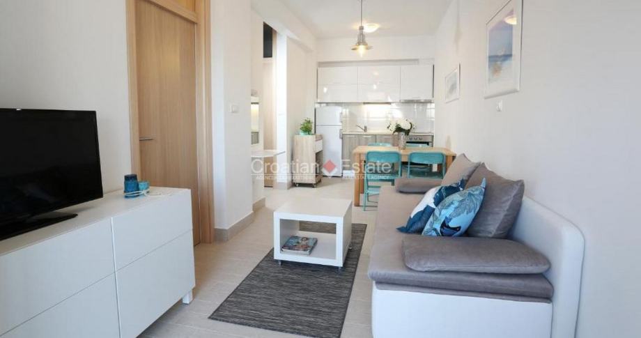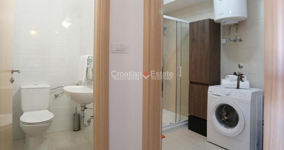 Iznajmljujemo moderan jednosoban stan površine 40 m2 smješten u prizemlju novogradnje. Sastoji se od kuhinje s blagovaonicom i dnevnim boravkom, spavaće sobe, kupatila i terase.