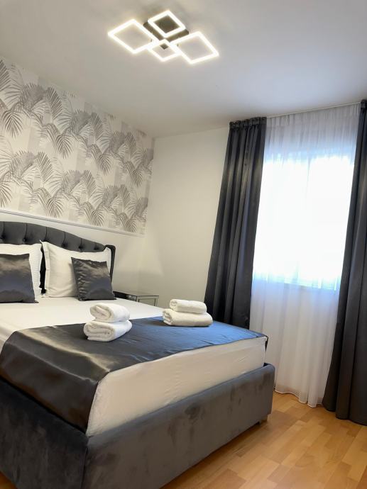 Posredujemo u najmu komfornog dvosobnog stana na Žnjanu. Stan je novi i potpuno uređen, nalazi se u zgradi 1. red do mora. Stan je potpuno namješten, a sastoji se od dvije spavaće sobe, kupatila, kuhinja s blagovaonicom, lođe i dnevnog boravka. U cijenu najma je uključeno i jedno vanjsko parkirno mjesto.