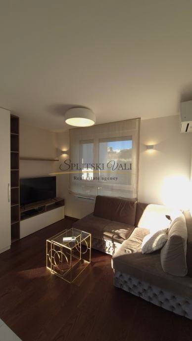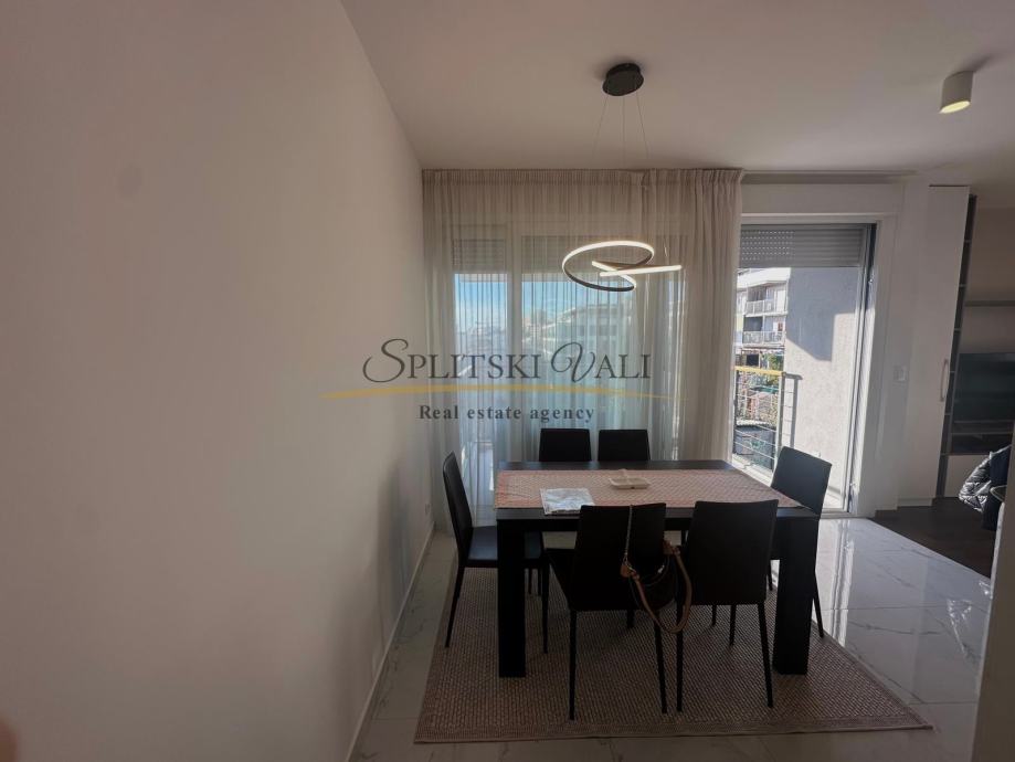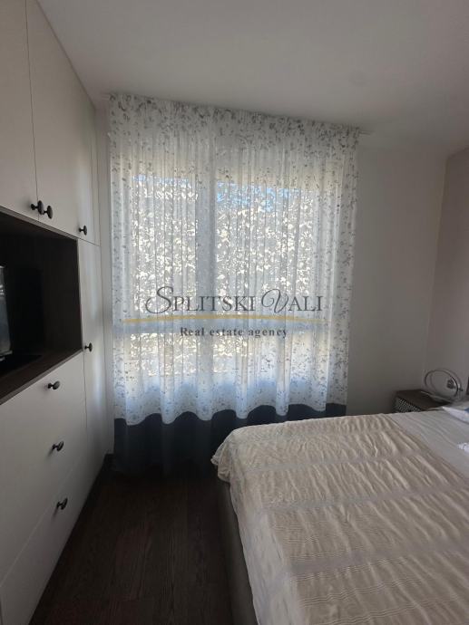 Posredujemo u prodaji jednosobnog stana s pogledom na more koji je smješten na 2.katu novogradnje (s liftom) na Žnjanu, orijentacija zapad, sjever, istok. Sastoji se od ulaznog dijela, kuhinje s blagovaonicom i dnevnim boravkom otvorenog tipa, jedne spavaće sobe sa kupaonicom koja ima podno grijanje i dodatnog wc-a ukupne površine 45.55m2 te balkona ukupne površine 8.32m2. Stan je potpuno namješten, ima dvije klime i pripada mu garažno parking mjesto koje je uključeno u cijenu. Dodatno je moguće kupiti još jedno garažno parking mjesto. Stan je moguće prenamijeniti u dvosoban stan.