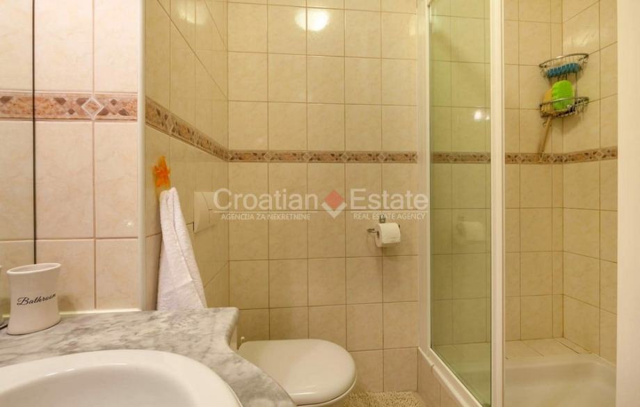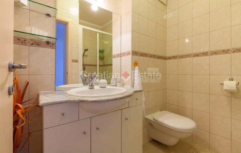 Iznajmljujemo komforni trosobni stan, stambene površine 100 m2, smješten u stambenoj zgradi prvi red uz more. Sastoji se od kuhinje s blagovaonicom i dnevnim boravkom, tri spavaće sobe, dvije kupaonice i velike lođe na jugu s koje se pruža predivan pogled na more.