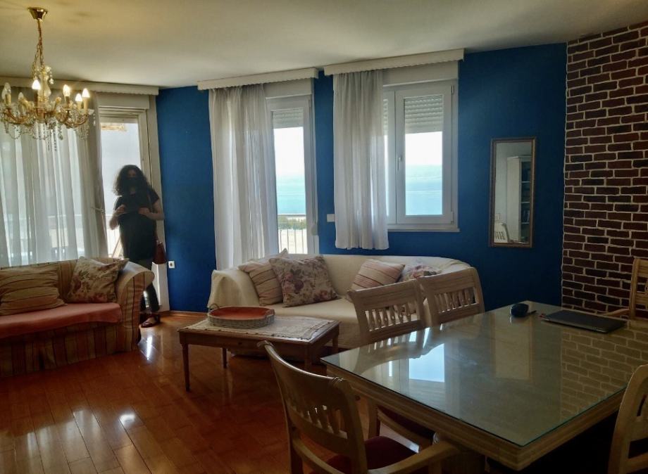 Stan na odlicnoj lokaciji,s pogledom na more i u blizini plaže, povrsine 90 m2 na drugom katu novije zgrade s liftom, južne orijentacije.Stan ima veliki balkon-terasu s kojeg se pruža pogled na more a od istog i plaže je udaljen cca 80m. Sastoji se od tri spavaće sobe, kuhinja, dnevni boravak,terasa,poseban wc, kupatilo, garažno mjesto povezano liftom i ostavu. Moguća kupnja samog stana bez garaže (480.000 eur).