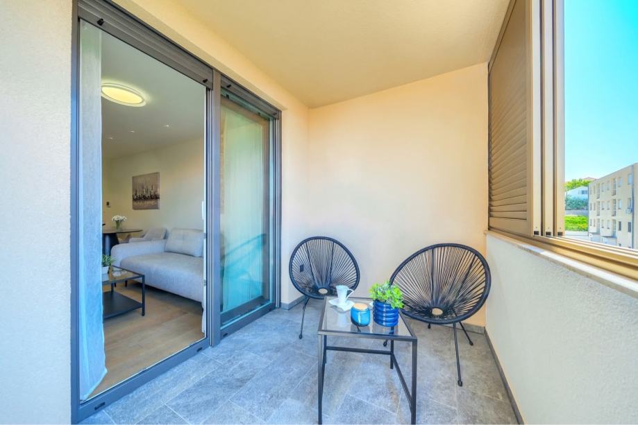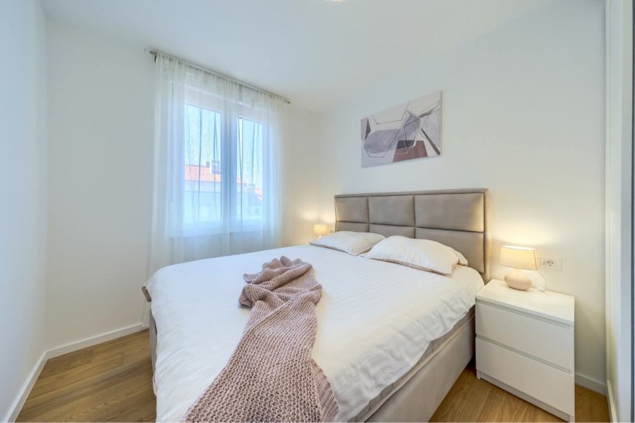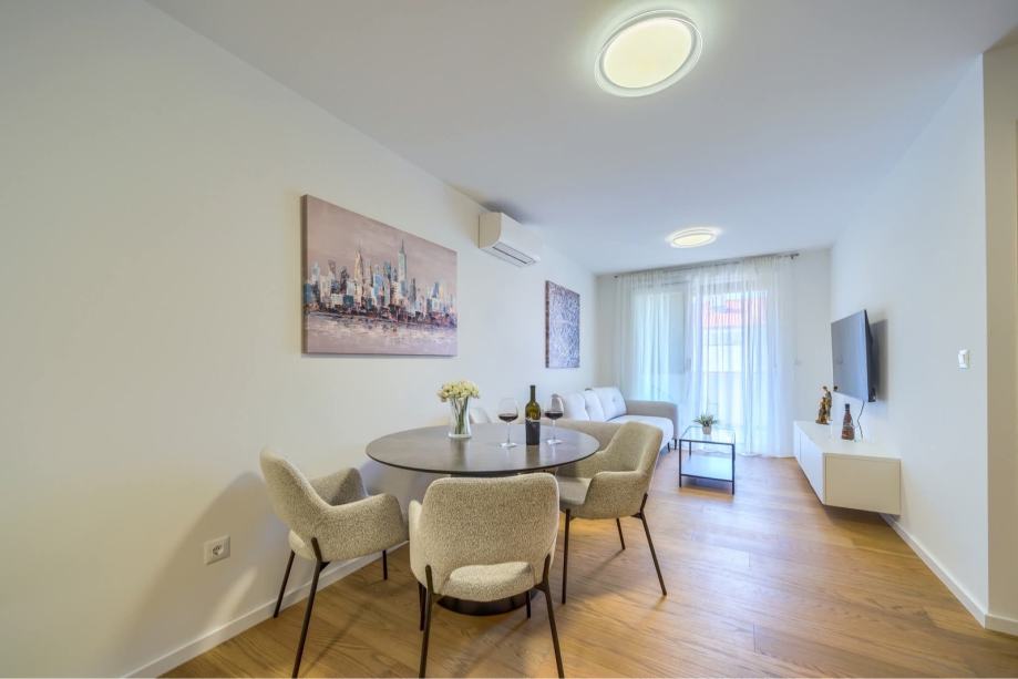 Stan se nalazi na 3. katu stambene zgrade, ima 53 m2, a sastoji se od dvije spavaće sobe, kuhinje s blagovaonom, dnevnog boravka, kupaonice i lođe. Podno grijanje u kupaonici i kuhinji.