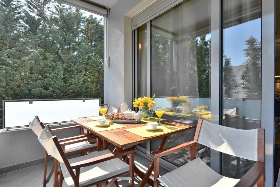 Lokacija je idealna jer su u blizini svi važni sadržaji, poput trgovina, autobusne stanice, kafića, dječjih igrališta, sportskih terena i restorana. Plaža Žnjan udaljena je samo nekoliko minuta hoda.