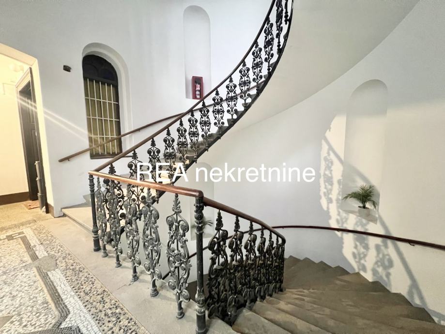 Na jednoj od najpoželjnijih i najreprezentativnijih adresa grada, tik uz Zrinjevac, smješten je ovaj izniman stan na 1. katu prekrasne secesijske zgrade s impresivnim ulazom i reprezentativnim stubištem koje odmah ostavlja snažan dojam.