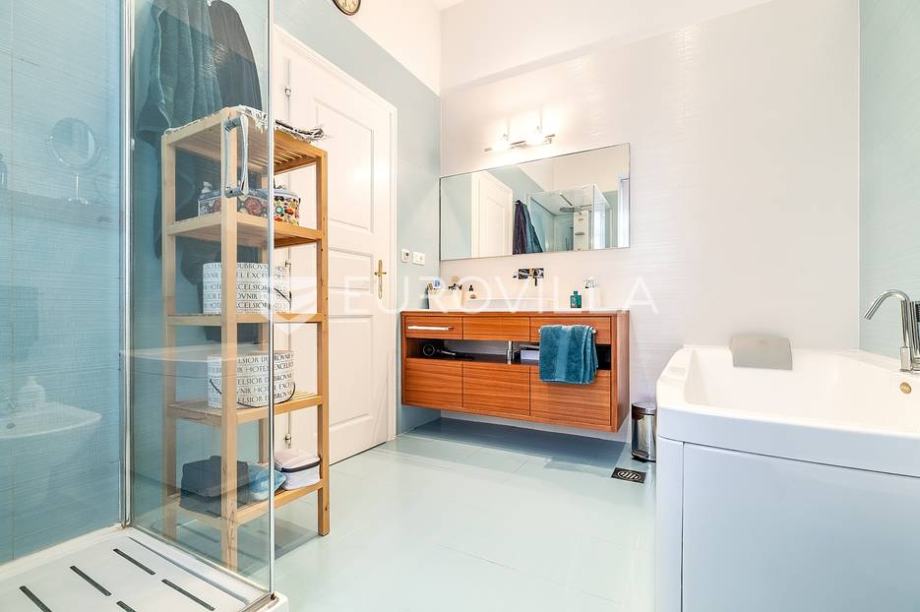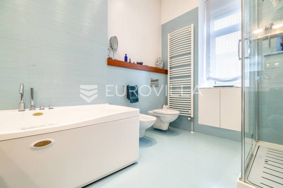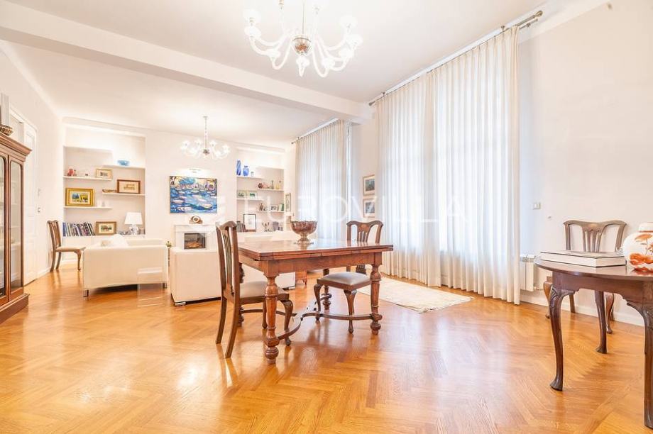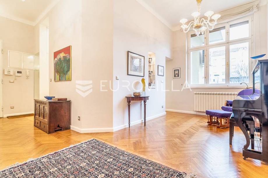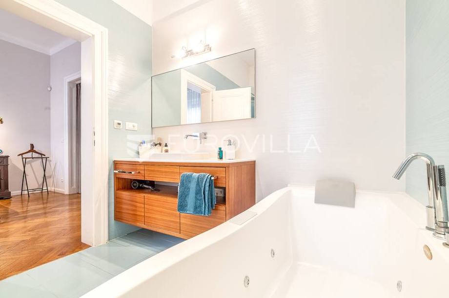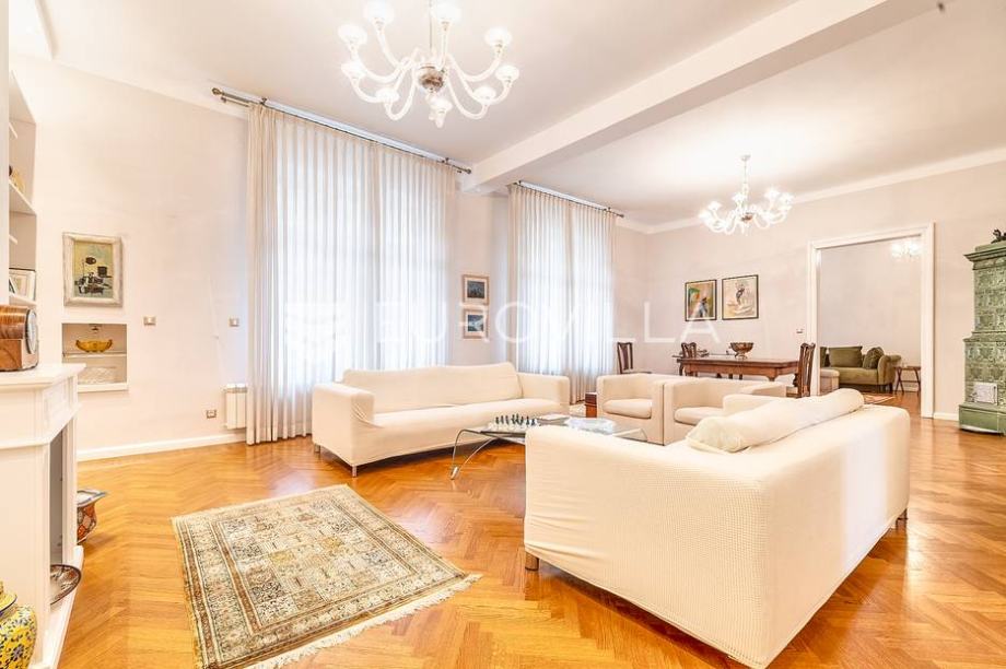 Zrinjevac, beautiful furnished three bedroom apartment of 200m2 on the first floor of a well maintained building. New beams, OSB, all new installations, underfloor heating in the bathrooms, all rooms air-conditioned, central heating, new windows, electric shutters, security doors, alarm, video...