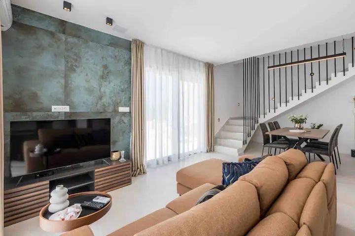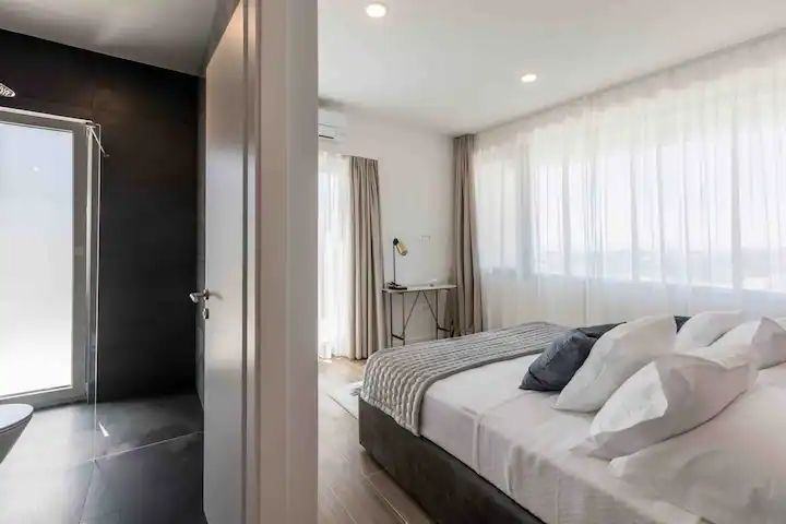 Villa ima 123 m2, a prostire se na dvije etaže. Na prvoj etaži nalazi se wc, kuhinja s blagovaonom, dnevni boravak s izlazom na terasu s bazenom. Na drugoj etaži nalaze se 3 spavaće sobe s vlastitim kupaonicama i izlazom na balkon.