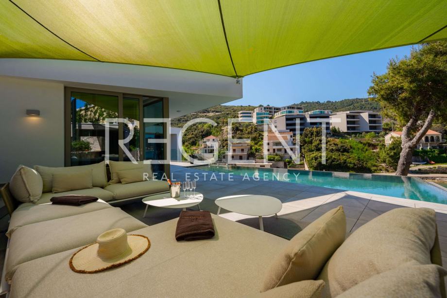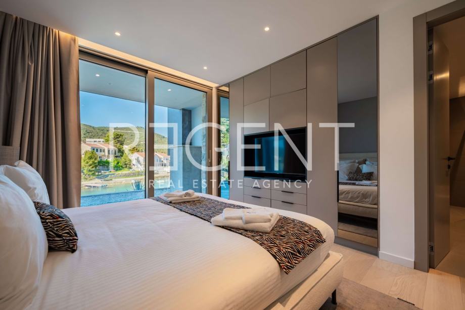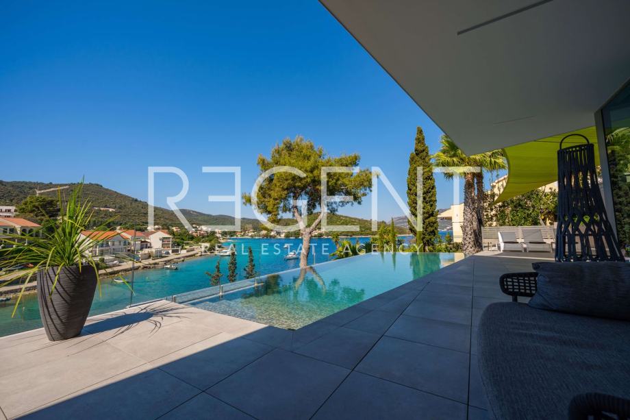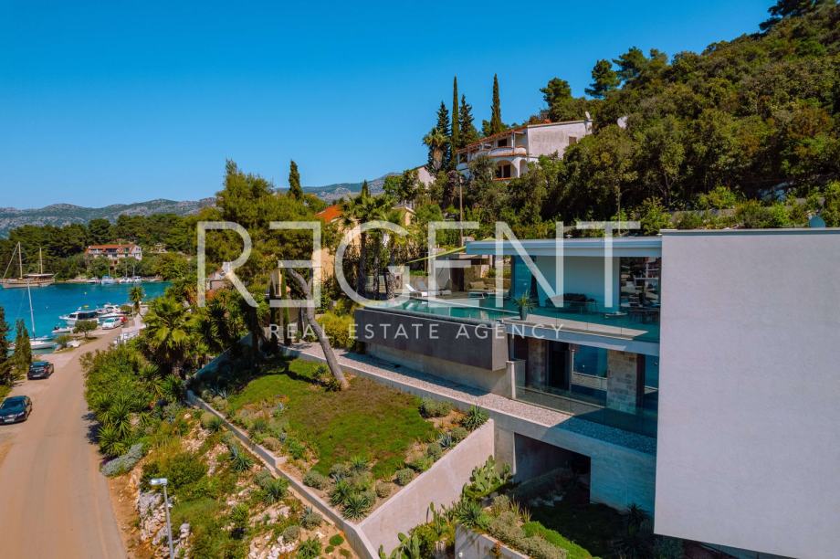 Ova luksuzna vila smještena je na otoku Korčuli, u mirnoj uvali, samo nekoliko koraka od kristalno čistog mora. Sa svojim modernim dizajnom i savršenim spoju elegancije i udobnosti, vila nudi jedinstveno iskustvo života uz more.Vila se prostire na 390 m² unutarnjeg prostora i smještena je na parceli od 1.500 m². S četiri prostrane spavaće sobe, šest luksuznih kupaonica te panoramskim pogledom na more, ova nekretnina je pravi raj. Na prvom katu nalaze se tri spavaće sobe s privatnim kupaonicama, dok drugi kat nudi otvoreni dnevni boravak i kuhinju s neometanim pogledom na more.Jedan od najupečatljivijih elemenata ove vile zasigurno je elegantni infinity bazen površine 49 m², koji pruža panoramski pogled na more.Okolni vanjski prostor uključuje terasu za sunčanje, prostor za opuštanje i roštilj.Vila također nudi lift koji povezuje sve katove, privatnu garažu i kuhinju opremljenu svim modernim sadržajem.Savršen je izbor za one koji traže luksuzni dom ili investiciju na jednom od najljepših jadranskih otoka. Vila je u neposrednoj blizini Korčule, koja nudi bogatu povijest, lokalnu kuhinju i vino.Kontaktirajte nas za više informacija.Za više informacija, kontaktirajte našeg agenta na brojeve telefona: