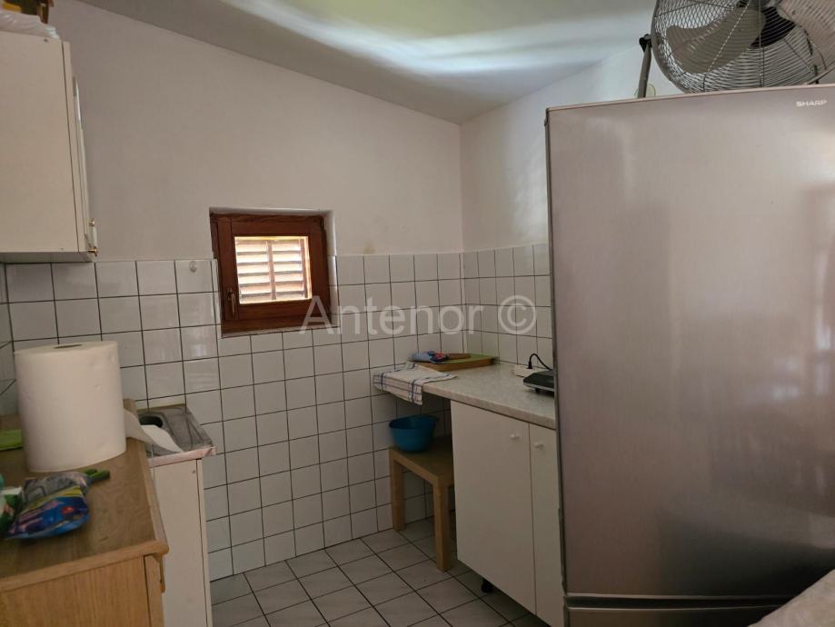 Kuća se sastoji od prizemlja i kata. U prizemlju kuće nalaze se dva stana - jedan jednosoban apartman i jedan dvosoban. Ukupna tlocrtna površina prizemlja je 79,05 m2. Na katu se nalazi također jedan jednosoban i jedan dvosoban apartman, a površina kata je 78,22 m2. Dvorište kuće je 189 m2. Udaljenost od mora i plaže je 300 m. Vlasništvo 1/1.