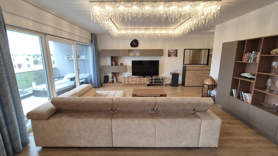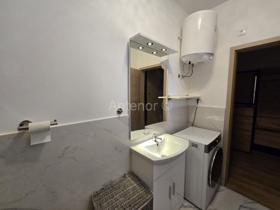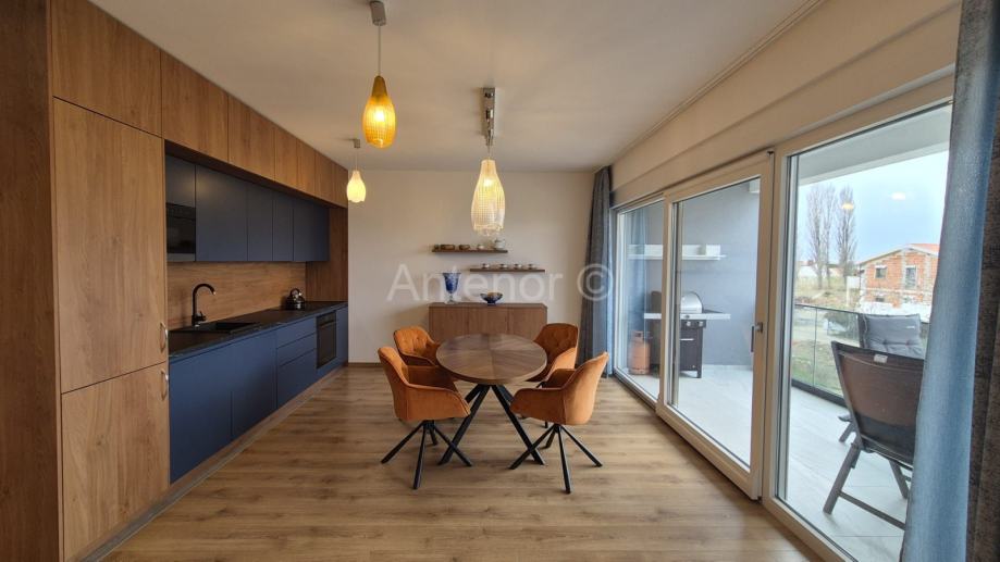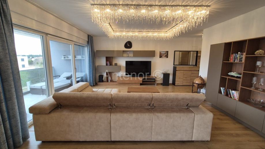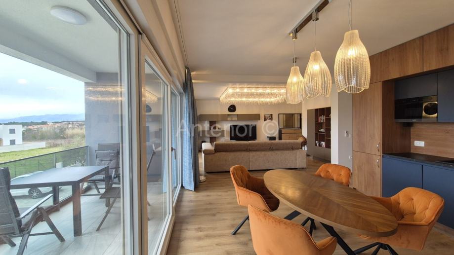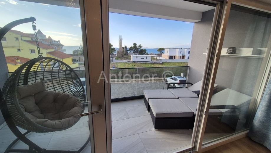 VRSI-ZUKVE - dvosoban apartman na 1. katu, površine od 102,70 m2. Apartman se sastoji od hodnika, praonice, wc-a, kupaonica, 2 spavaće sobe, dnevnog boravka, kuhinje i 2 loggie. Apartman se prodaje kompletno namješten i opremljen. Apartman se nalazi 130 m od mora i plaže sv. Jakov u Vrsima. Vlasništvo uredno 1/1.