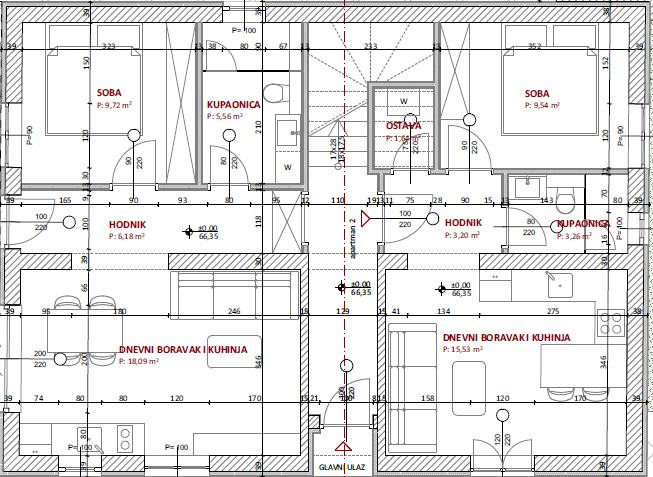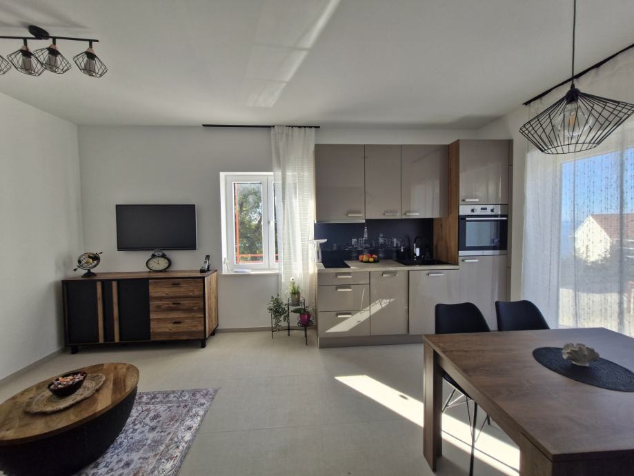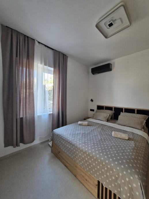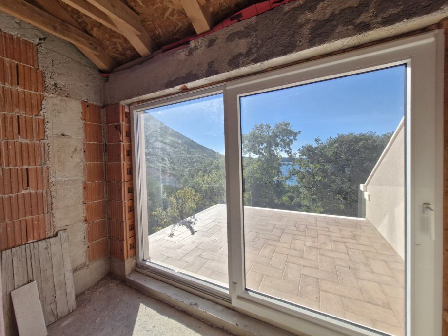 In Plat, in a quiet location just a few hundred meters from the sea, lies a property that represents an excellent foundation for developing a high-end tourist accommodation project. The building has been completely structurally renovated but remains unfinished, offering flexibility in the final design and layout. It is conceived as two separate residential units, with the possibility of hosting guests in individual apartments that share a common outdoor area.