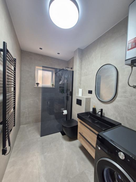 U prizemlju se nalazi dovršena i opremljena jedinica spremna za korištenje, dok je dvoetažna jednica u fazi uređenja, što omogućuje prilagodbu budućim potrebama i standardima luksuznog najma. Ispred kuće nalazi se ograđeno dvorište s planiranim prostorom za jacuzzi i saunu, kao i privatnim parkingom za više vozila.