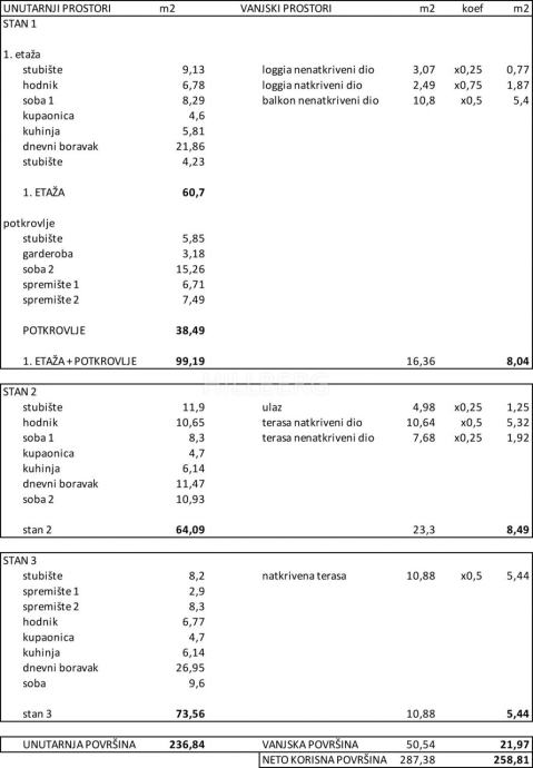 Detaljne kvadrature i raspored vidjeti na priloženim tlocrtima.