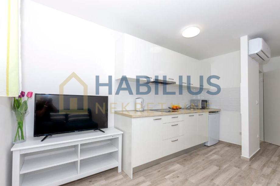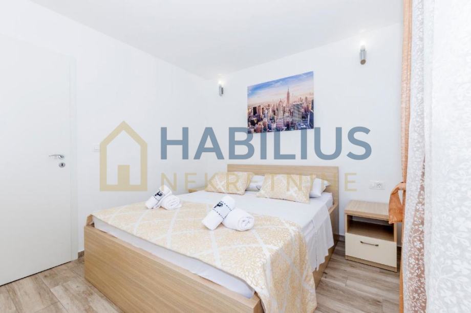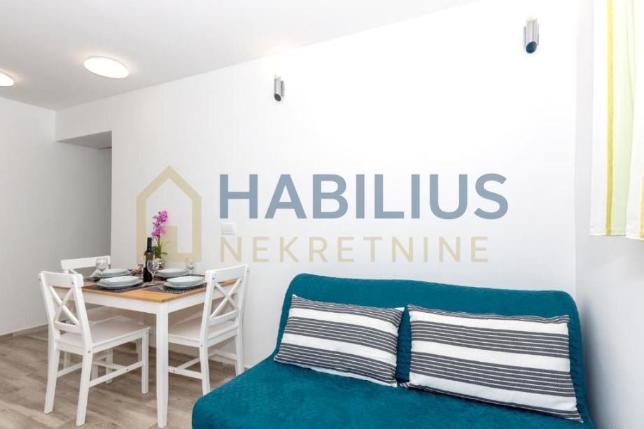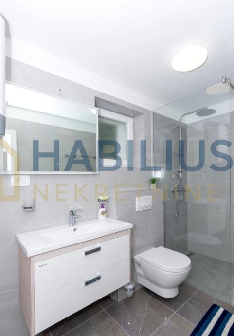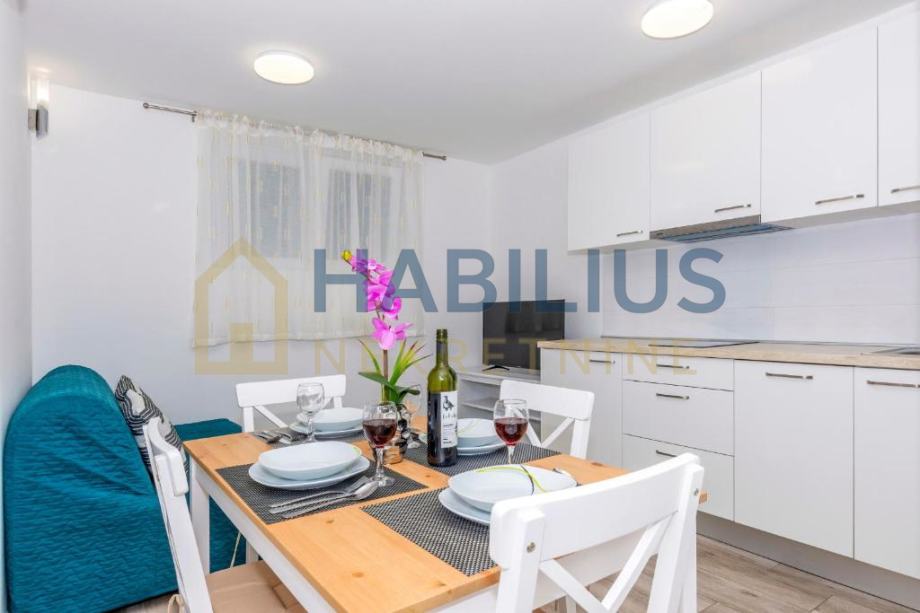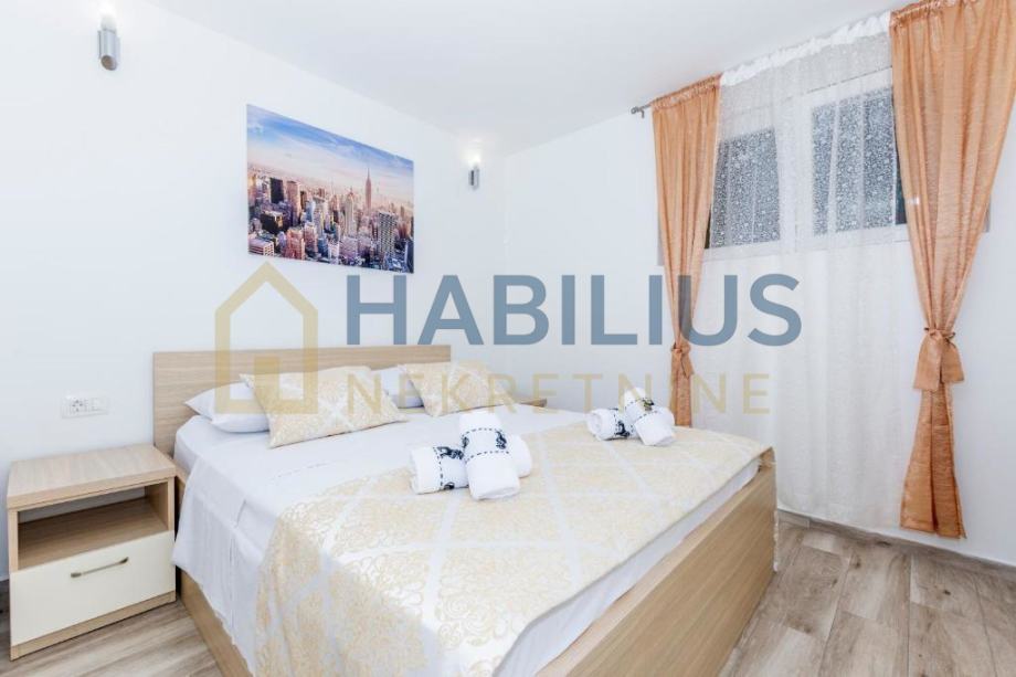 Posredujemo pri prodaji stana od 55m2 koji se nalazi u suterenu manje stambene zgrade u predjelu Zvončaca. Stan ima dosta svjetla, i u naravi je podijeljen u dvije apartmaske jedinice koje su uređene i kategorizirane za turizam, i to jednosobni apartman od 30m2 i drugi studio apartman od 20 m2. Posao iznajmljivanja je vrlo dobro uhodan i donosi dobru zaradu, i kao takav predstavlja odličnu investiciju. Udaljen je 50-ak m od mora, i nalazi se na odličnoj lokaciji u veoma mirnom okruženju. Blizina Bobisa, kao i svih ostalih važnih sadržaja. Vlasništvo uredno, cijena je 300.000 € + agencijska provizija 2%+PDV