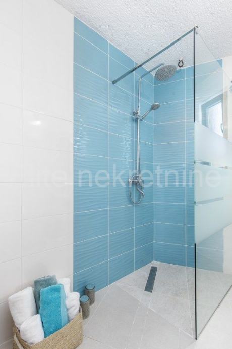 Stan se sastoji od 2 spavaće sobe, 2 kupaonice s tušem, dnevnim boravkom i kuhinjom te terasom, vrtom sa bazenom i garažnim mjestom.