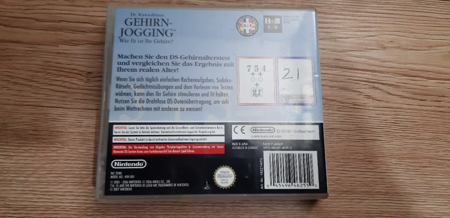 - prodajem igru Brain Traning za Nintendo DS, u odličnom stanju. Omot je na njemačkom ali igra je na engleskom