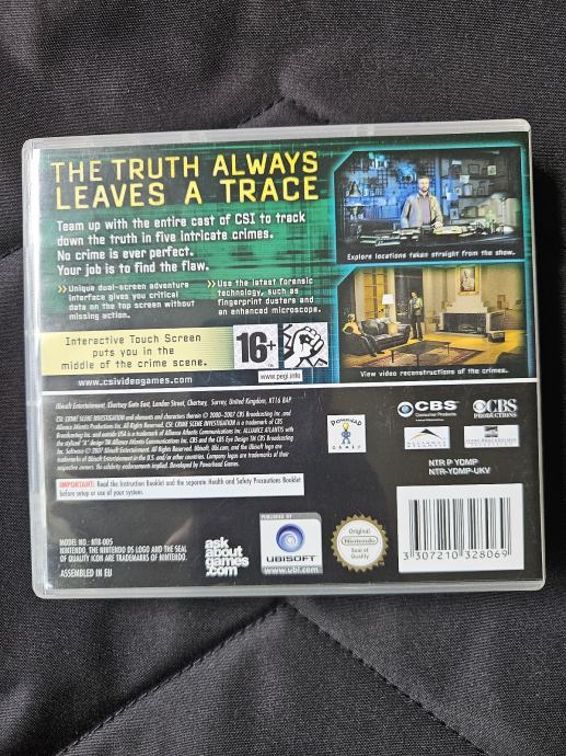 Orignal i ispravna igrica Crime Scene Investigation Dark Motives za Nintendo DS, DS Lite, DSi, DSi XL, 2DS, 3DS i 3DS XL konzole. Igrica je na engleskom jeziku. Sve je u odlicnom stanju.