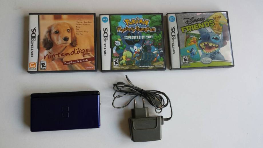 na prodaju ekstra očuvan Nintendo DS Lite USA model sa tri igre punjacem i orginalnom kutijom sve ispravno i testirano ekrani i zvuk perfektni