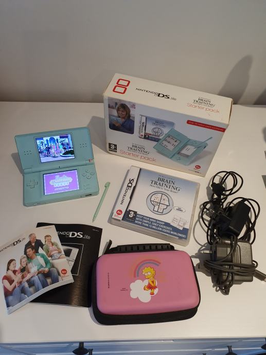 Nintendo DS Lite + original Brain Training i kartica sa 39 "skinutih" igara (sve igrice za predškolsku dob! Igrice su tipa Peppa Pig, Barbie, Tom i Jerry i sl.)