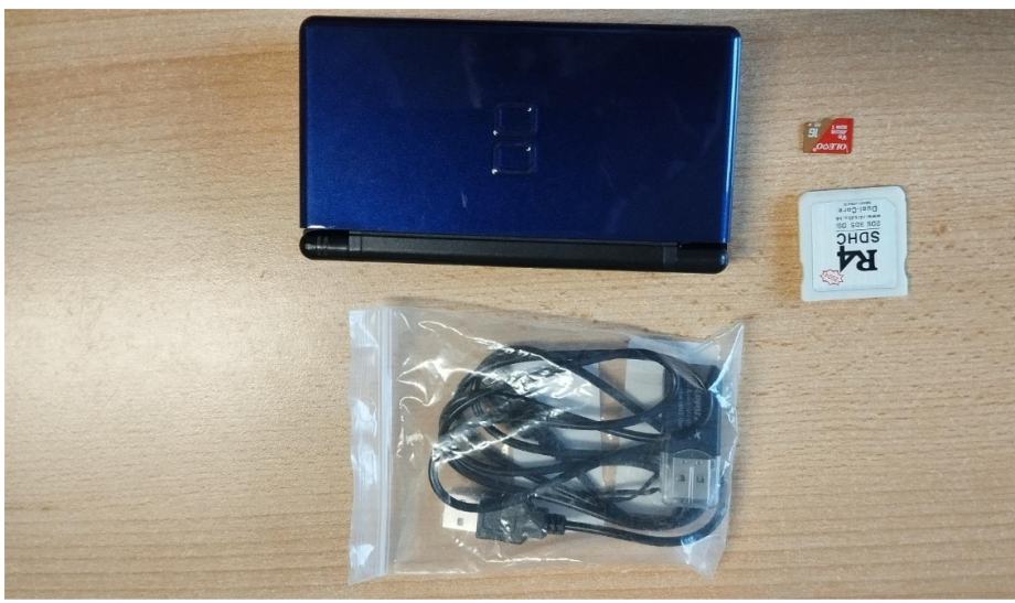 Potpuno funkcionalni Nintendo DS lite uključujući punjač i R4 karticu s microSD karticom od 16 GB. Uređeno je nekoliko igara za DS i Gameboy. Dodatne se mogu preuzeti s interneta.