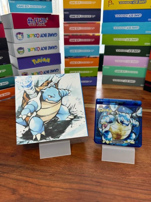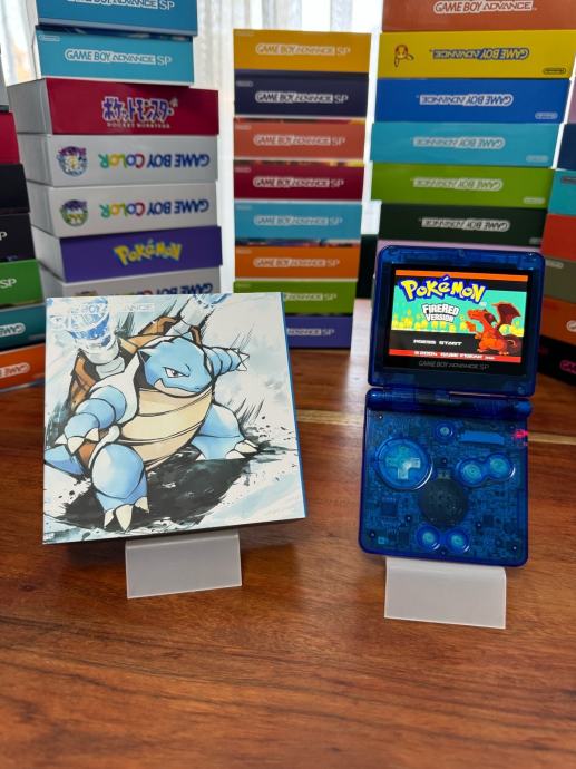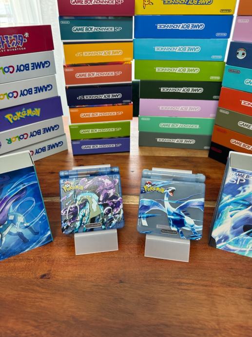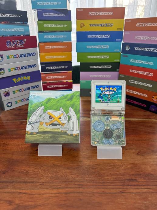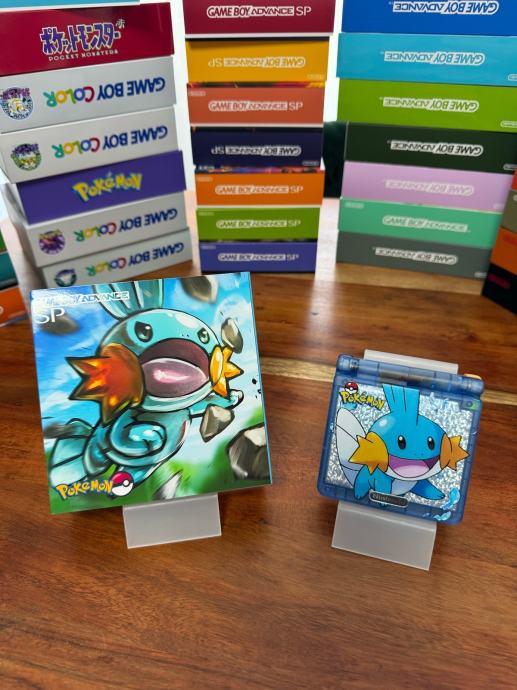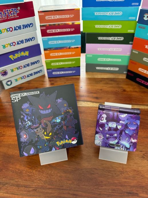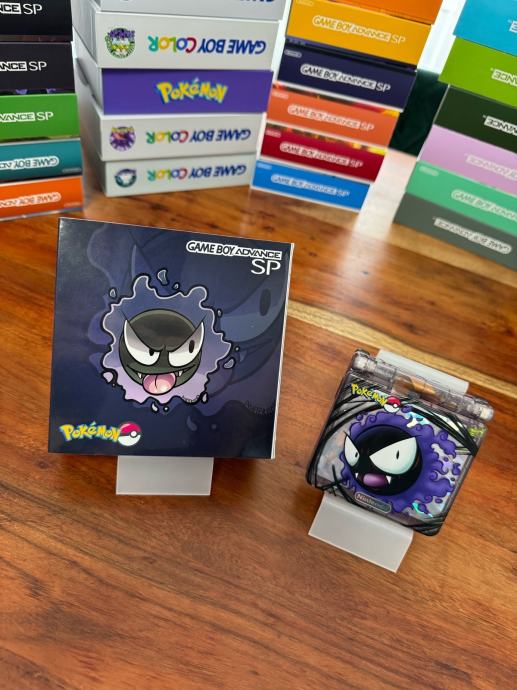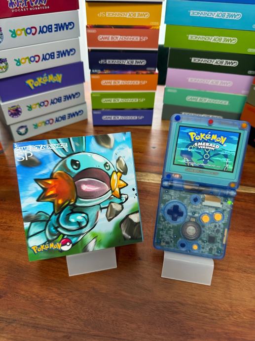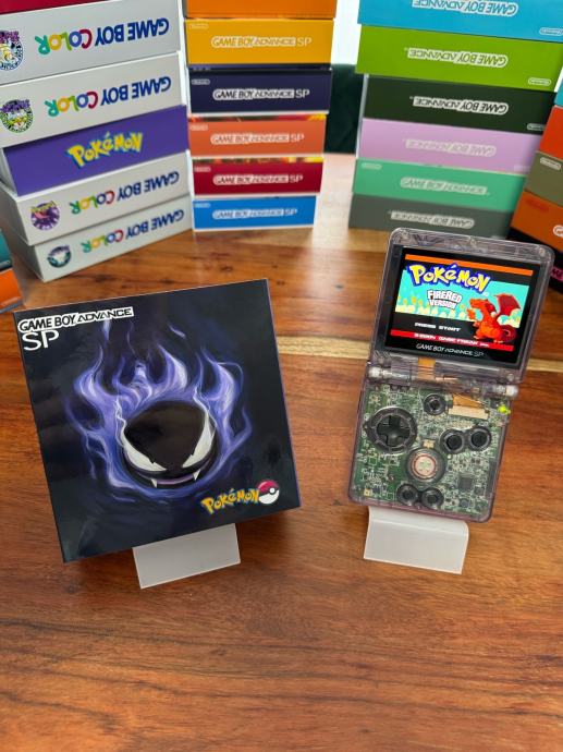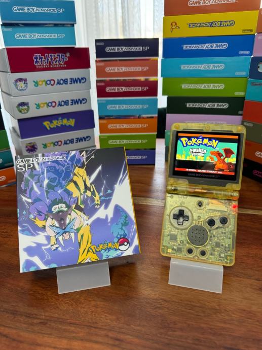 Na slici su modificirane konzole gameboy advance SP, sa vrhunskim UV printanim kucistem, IPS ekranom sa podesavanjem svjetline ekrana, pixela i frameratea ili originalnim 101 ags displayom.