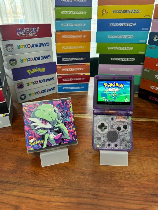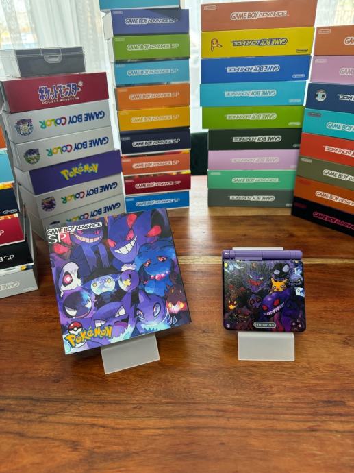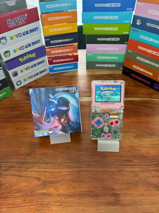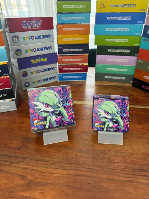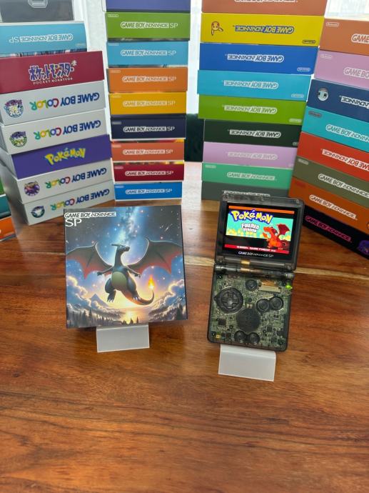 Na slici su modificirane konzole gameboy advance SP, sa vrhunskim UV printanim kucistem, IPS ekranom sa podesavanjem svjetline ekrana, pixela i frameratea ili 101 ags originalnim displayom.